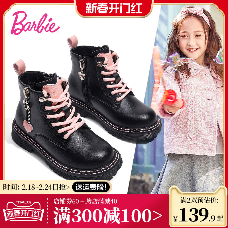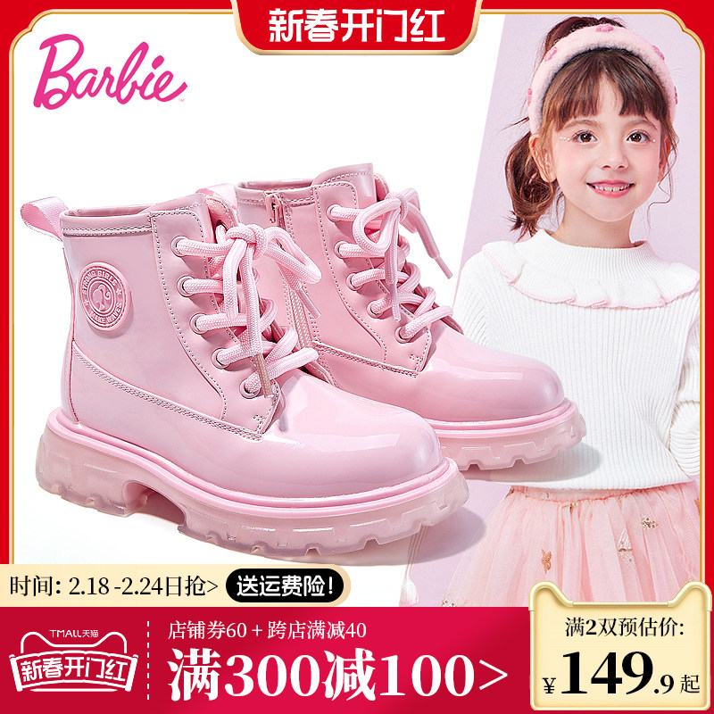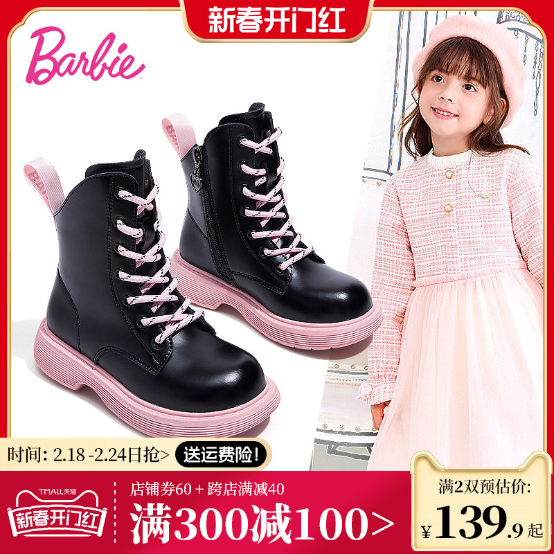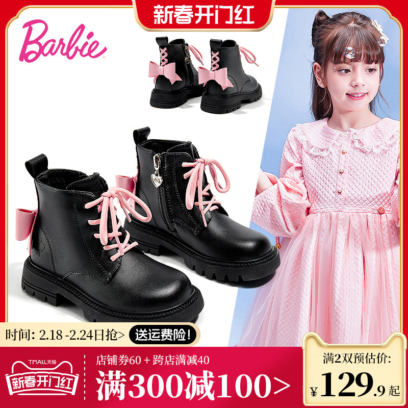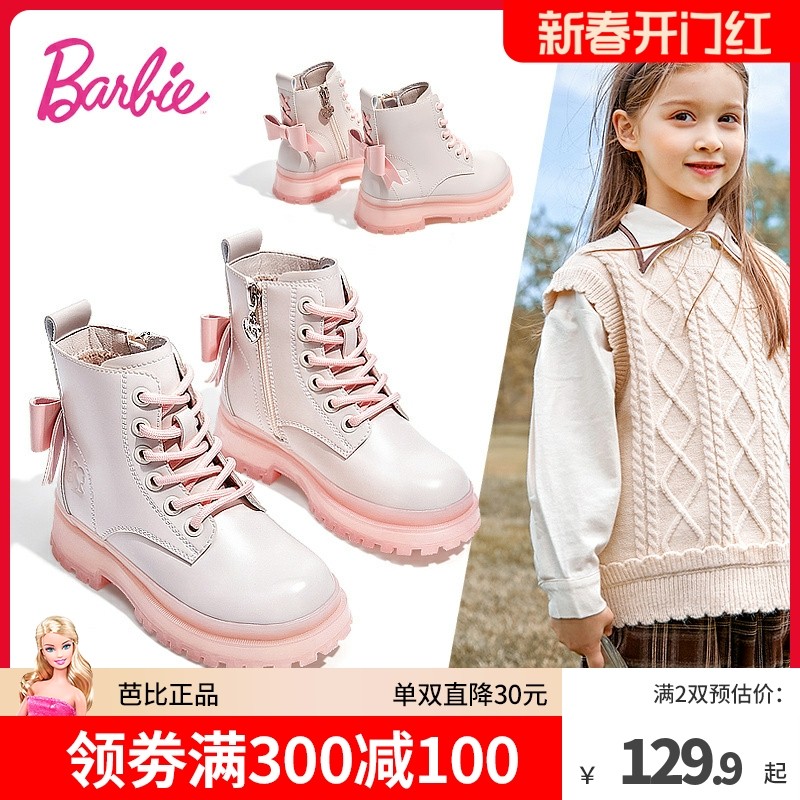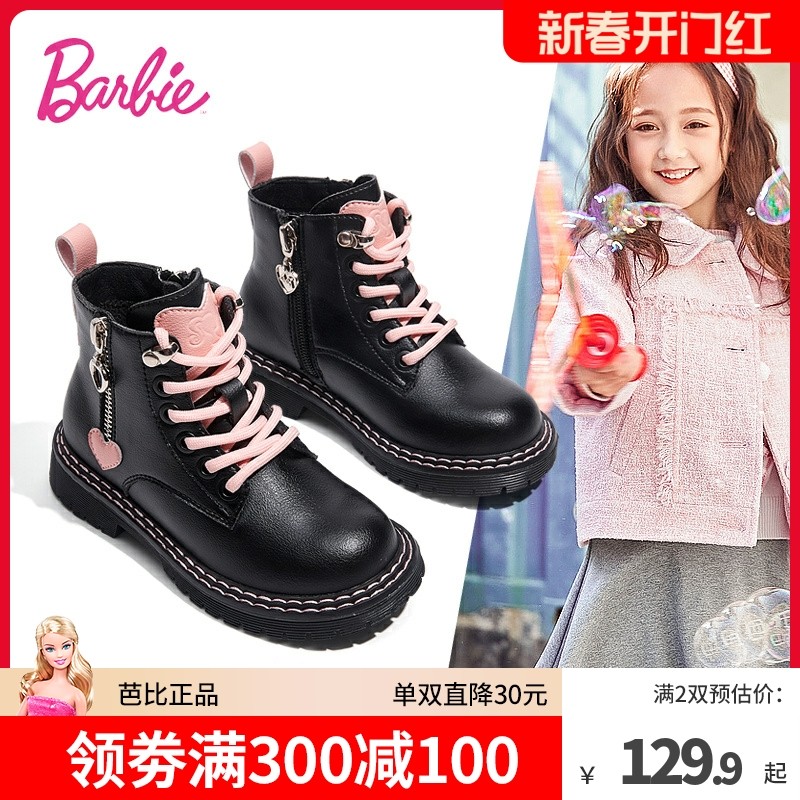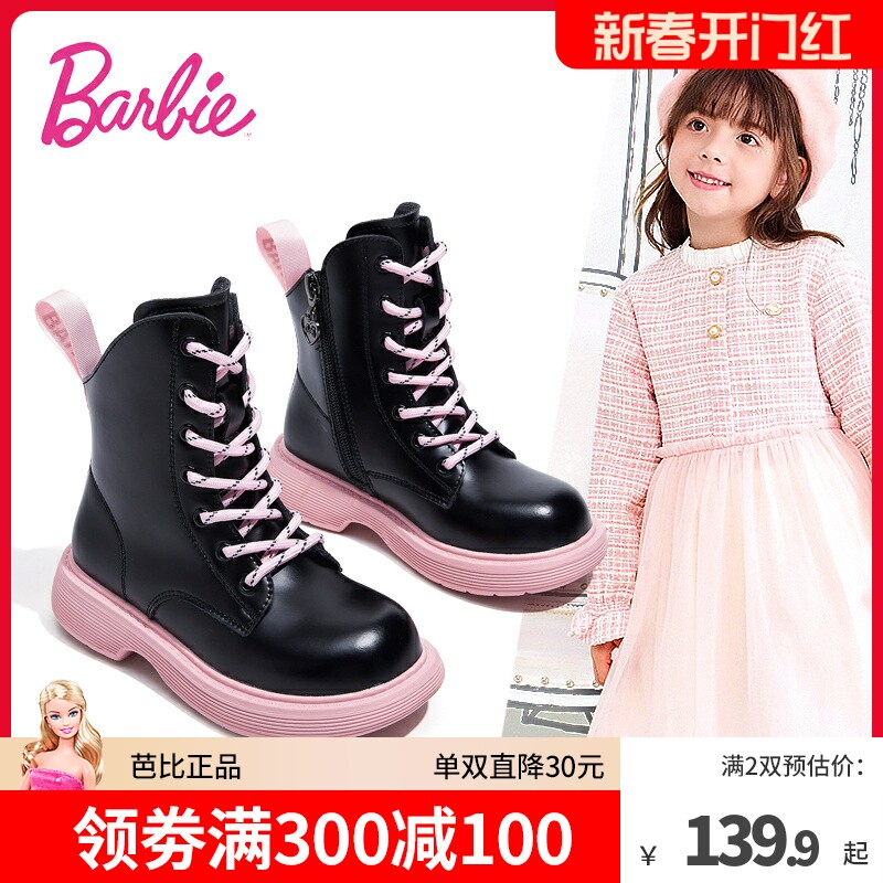 芭比童鞋儿童马丁靴女童靴子2023新款秋冬公主靴单靴加绒女童短靴