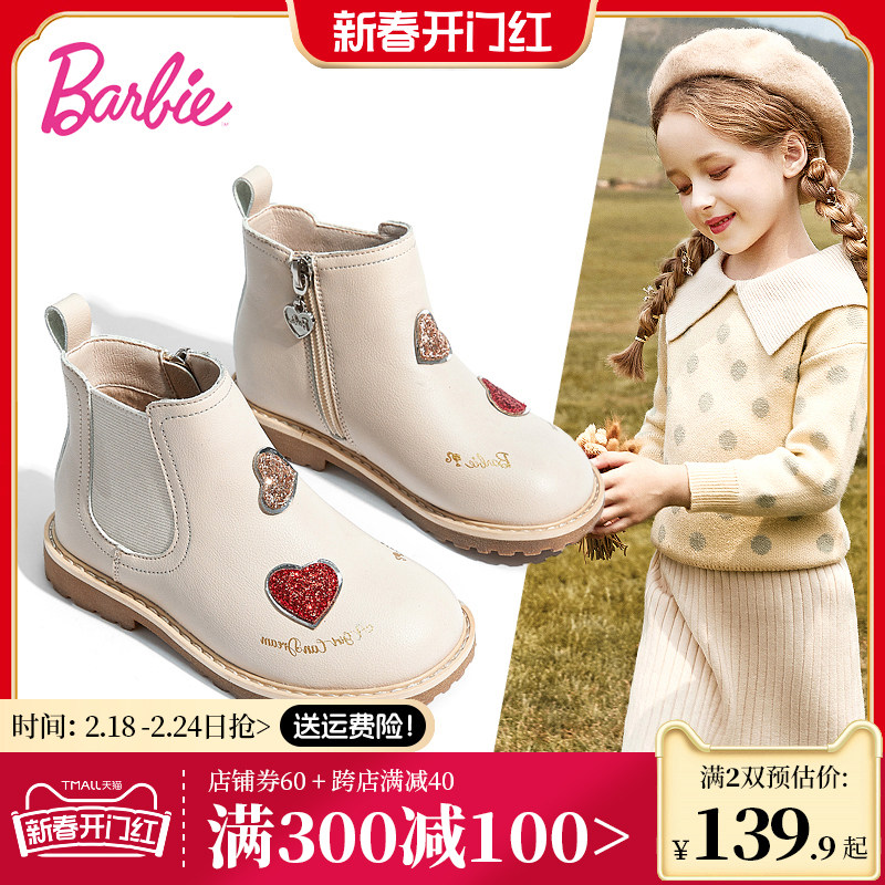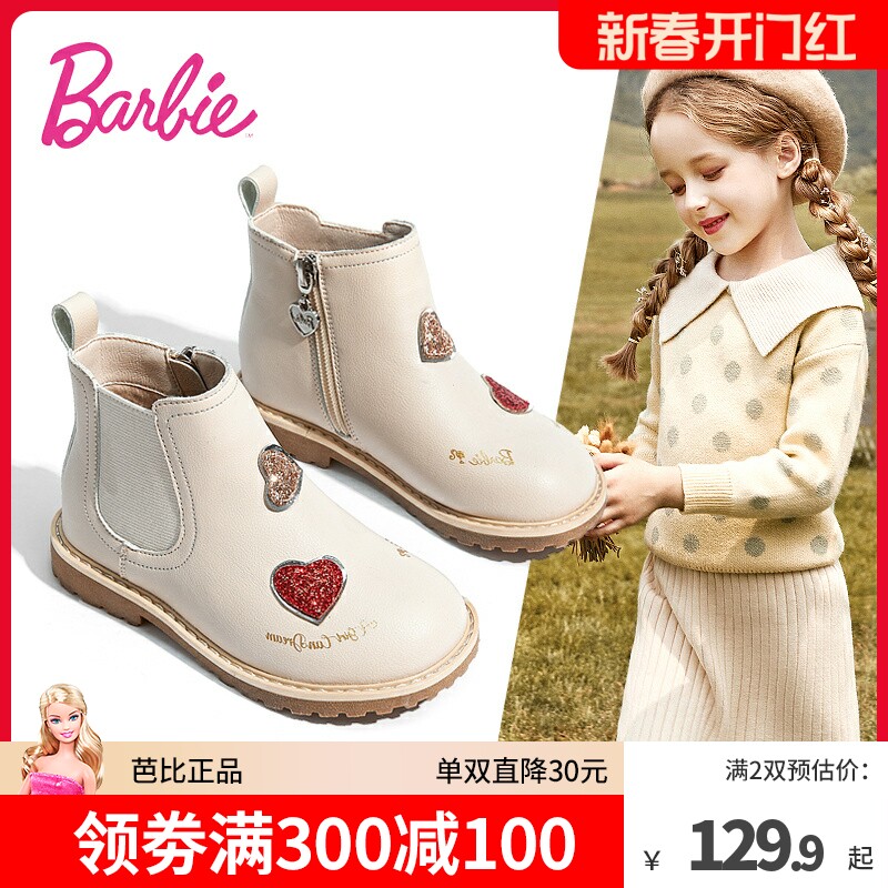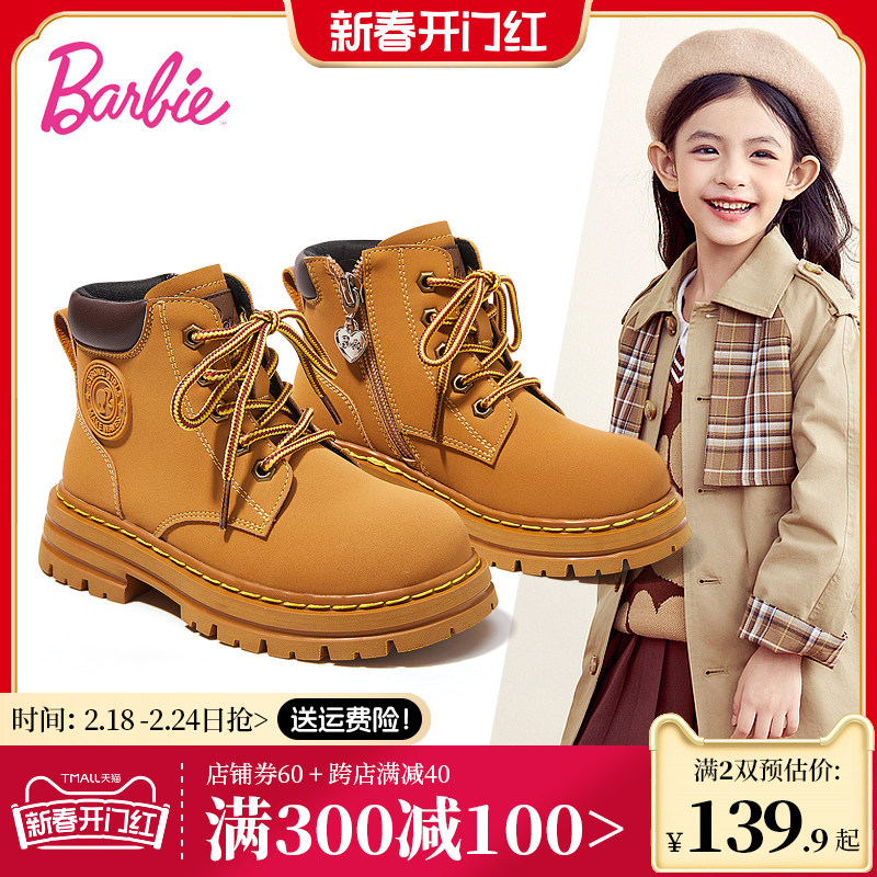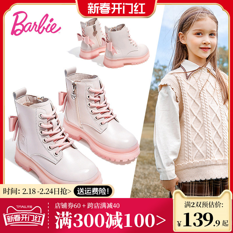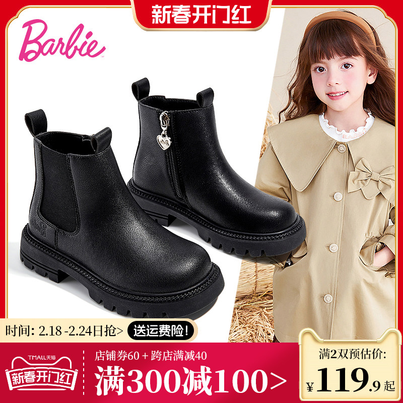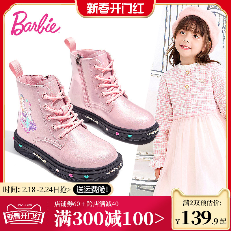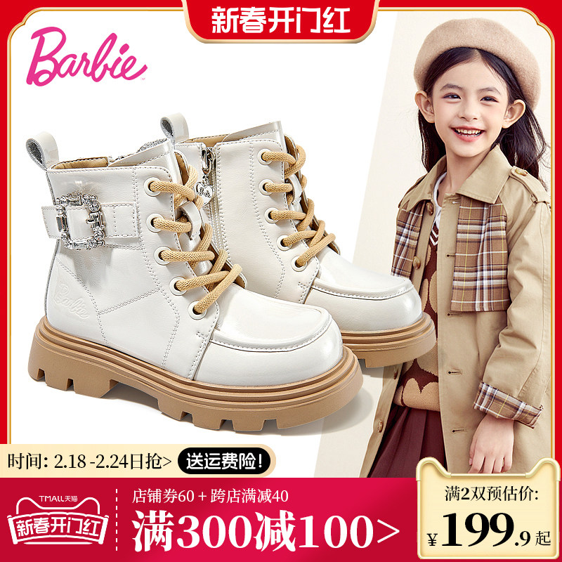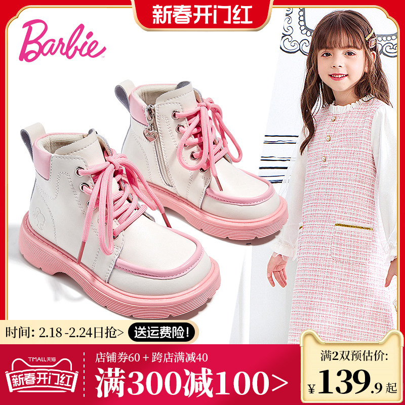 芭比童鞋儿童马丁靴女童靴子2023新款秋冬公主靴单靴加绒女童短靴