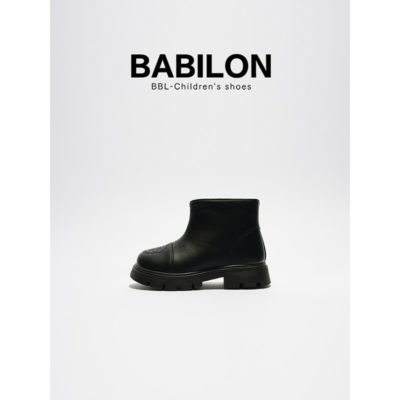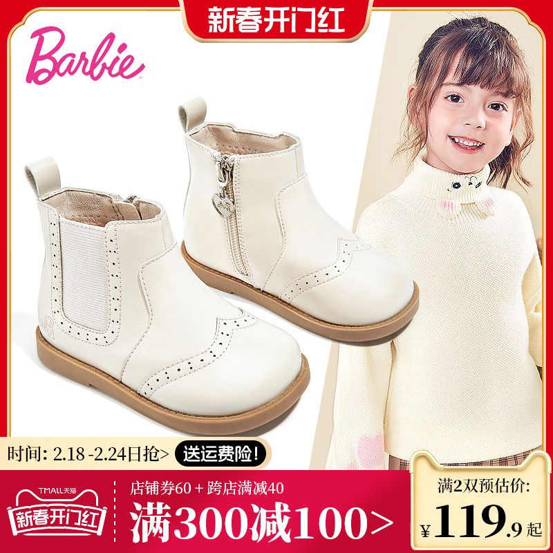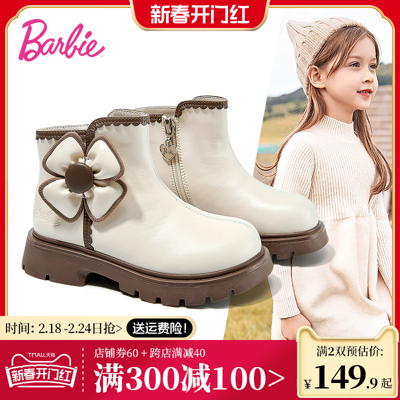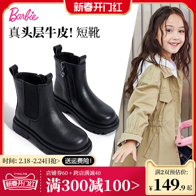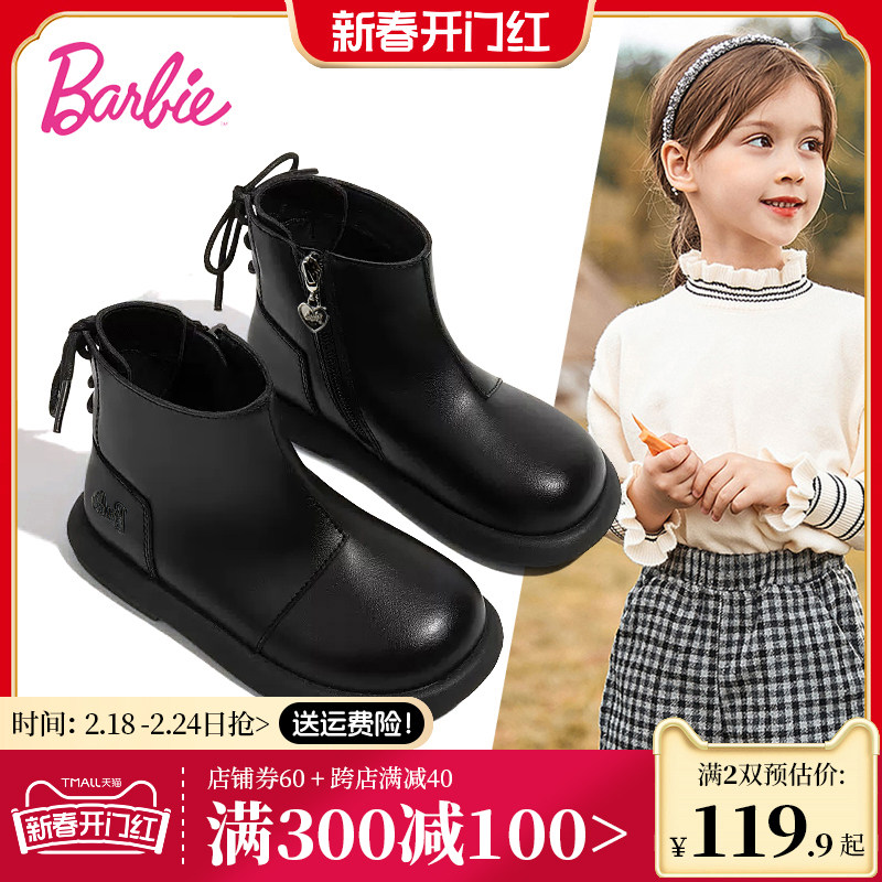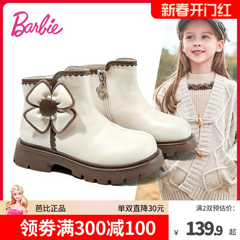 芭比童鞋儿童马丁靴女童靴子2023新款秋冬儿童真皮短靴女童公主靴