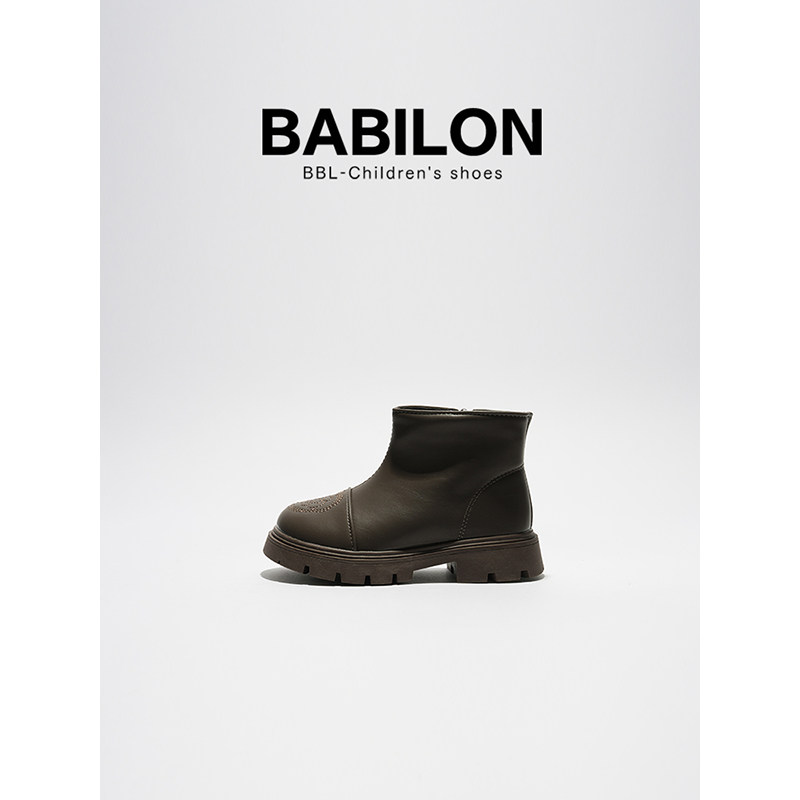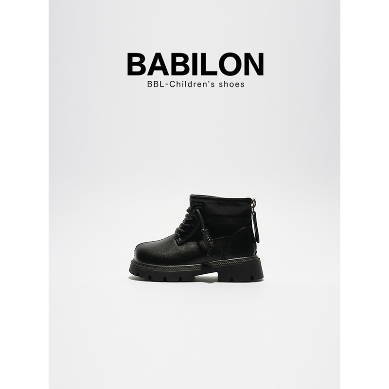 芭比童鞋女童靴子2023新款冬季小童皮靴儿童短靴加绒女宝宝马丁靴