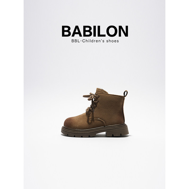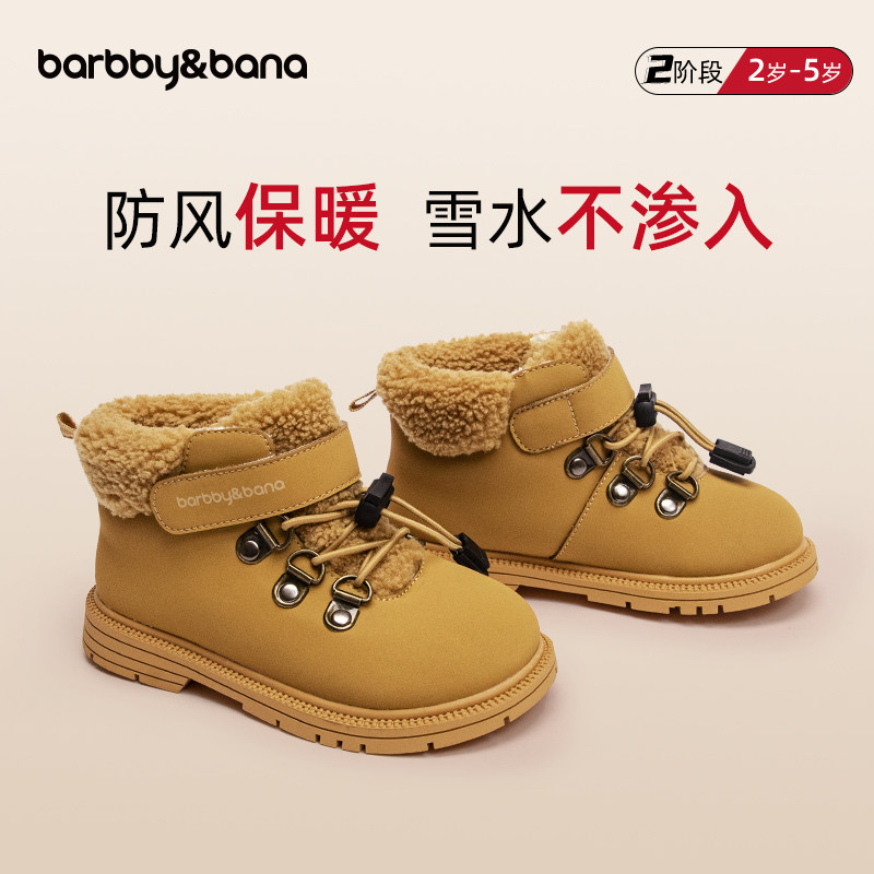 芭比班纳宝宝冬季雪地靴儿童鞋子男童马丁靴女童短靴加绒中筒皮靴