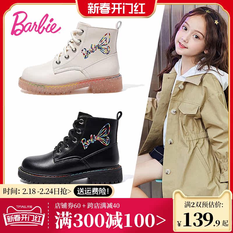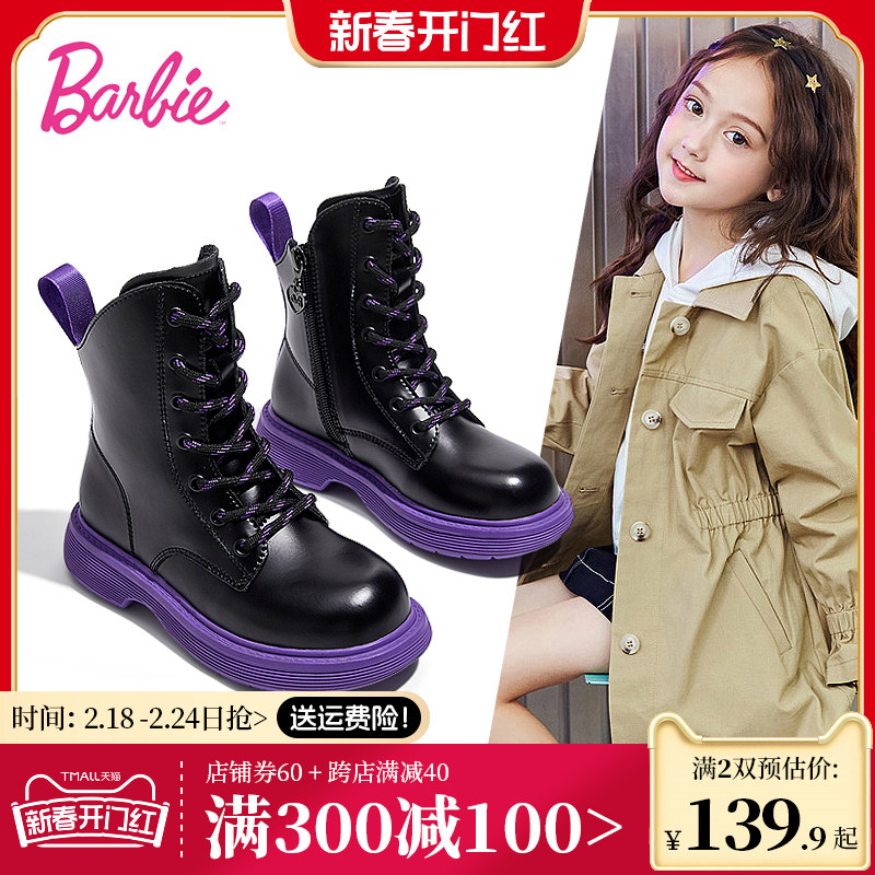 芭比童鞋女童马丁靴2023新款秋冬洋气女童短靴中大童皮靴儿童靴子