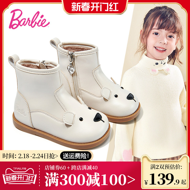 芭比童鞋女童短靴2023新款冬季皮靴加绒二棉靴儿童靴子女童马丁靴