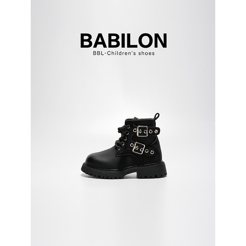 芭比童鞋儿童马丁靴女童靴子2023年新款儿童皮靴女童短靴春秋单靴
