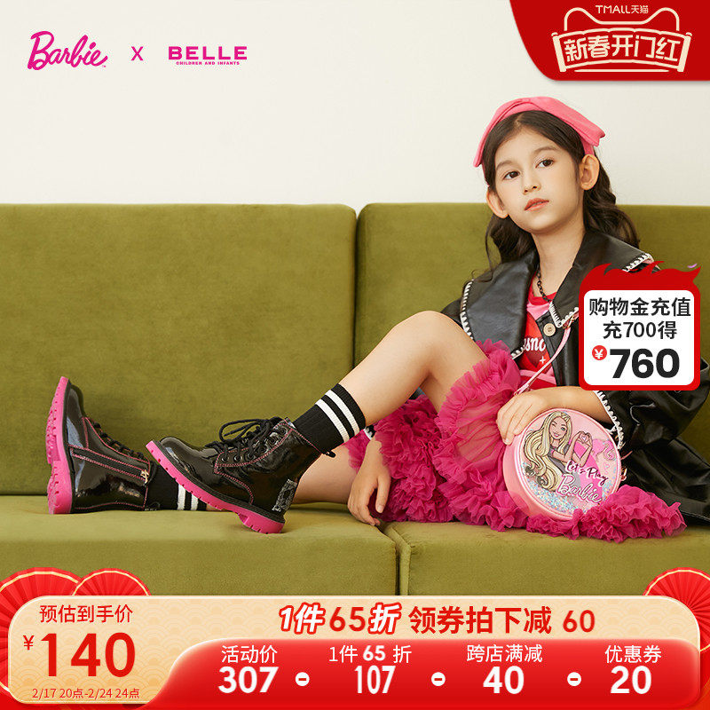 百丽/芭比联名童鞋女童马丁靴春夏新款小女孩公主靴儿童宝宝短靴