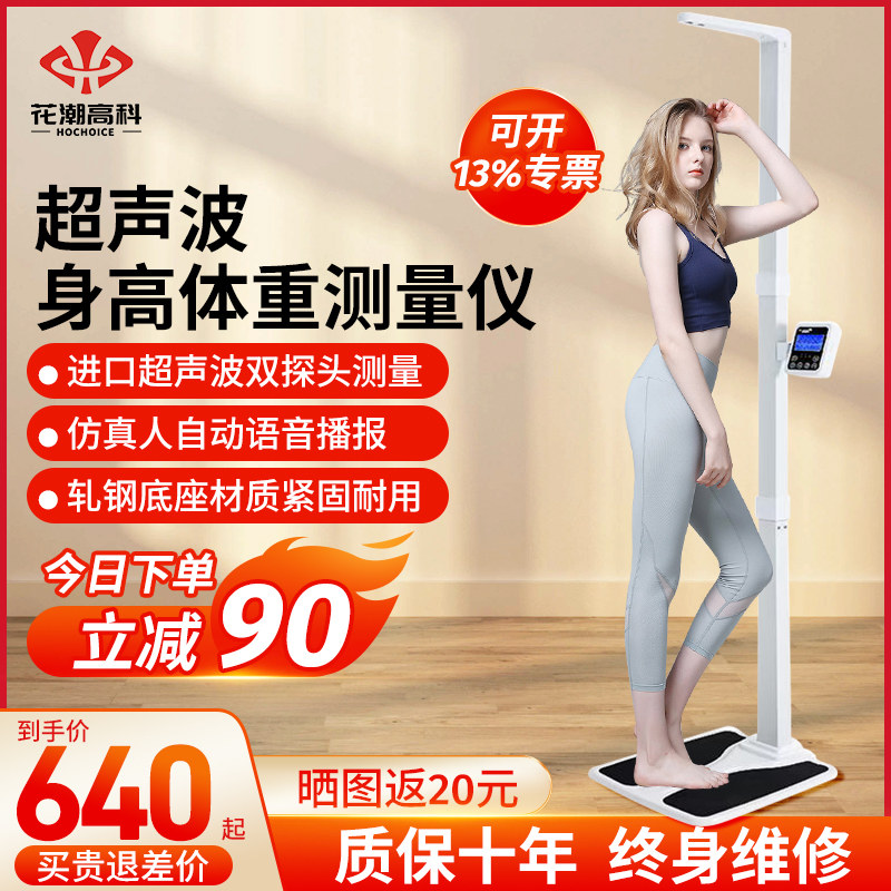 源头工厂花潮超声波身高体重秤测量仪体脂秤语音播报电子秤可打印