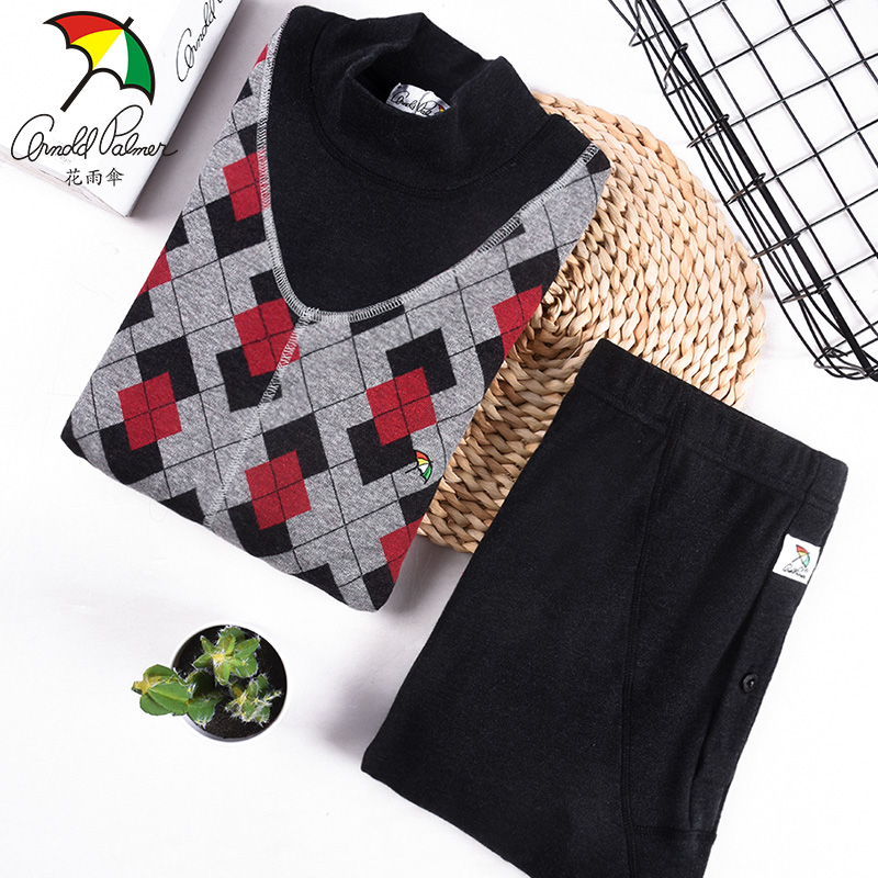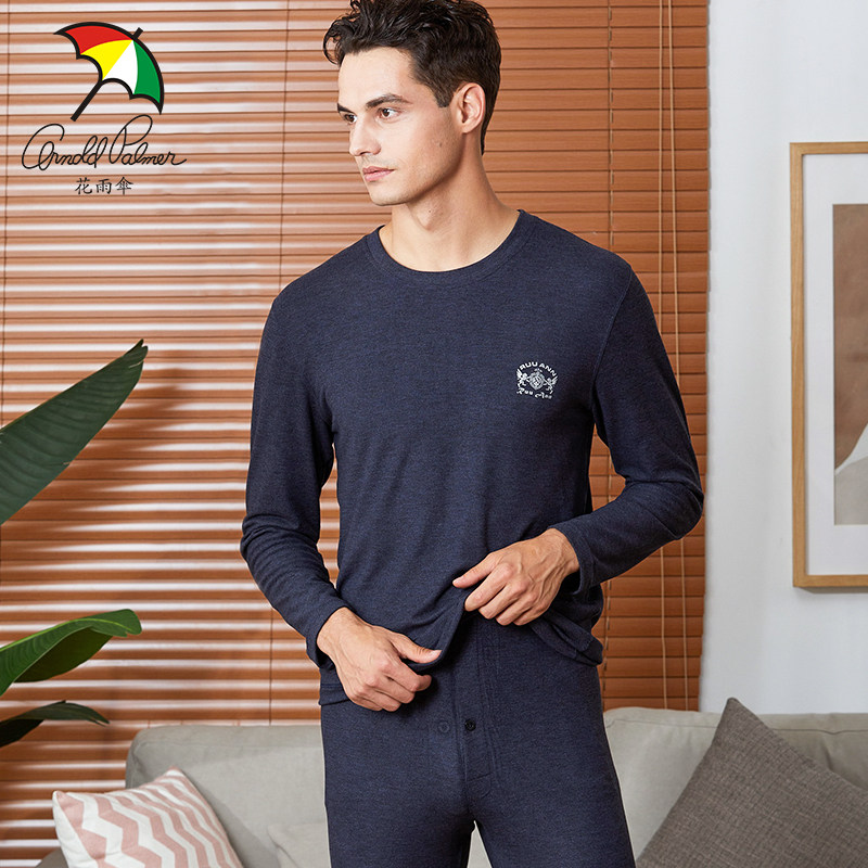 花雨伞男士棉毛衫秋衣秋裤莫代尔弹力打底内衣套装青少年中年秋冬