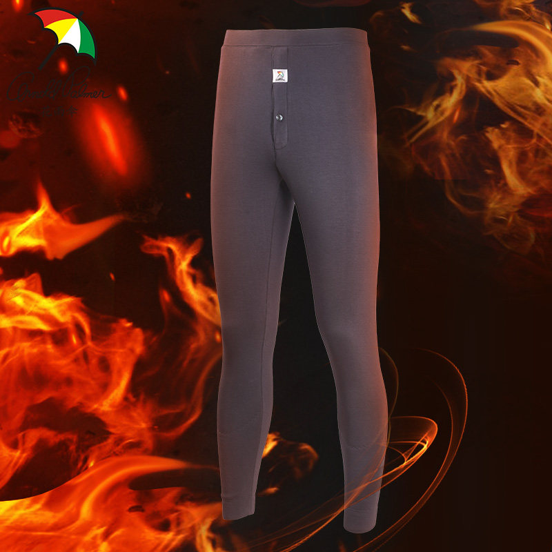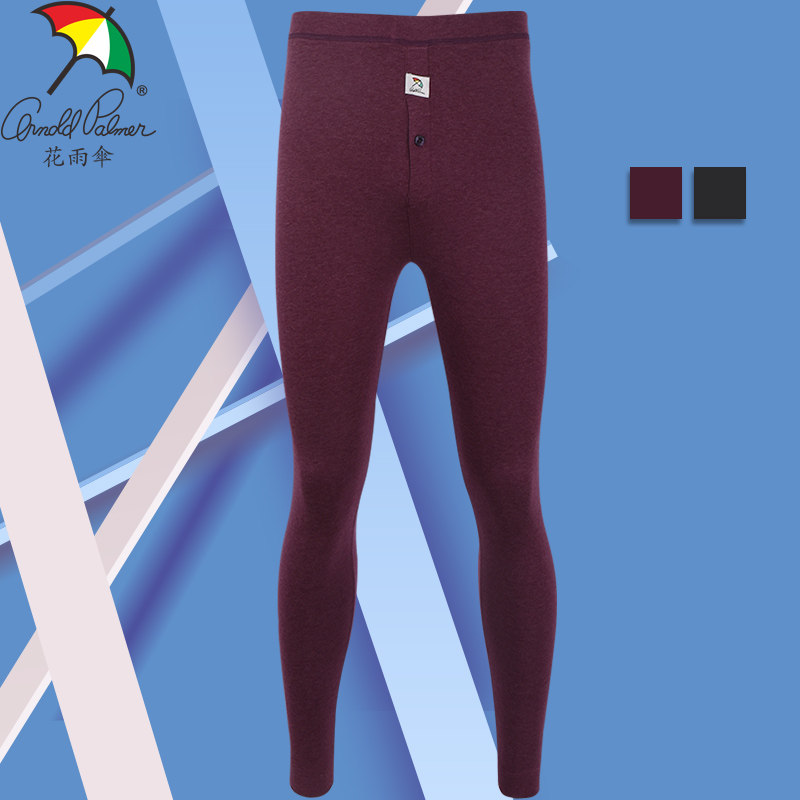 花雨伞男士保暖打底裤中厚加绒膝盖加厚纯色中腰单条裤秋裤冬季