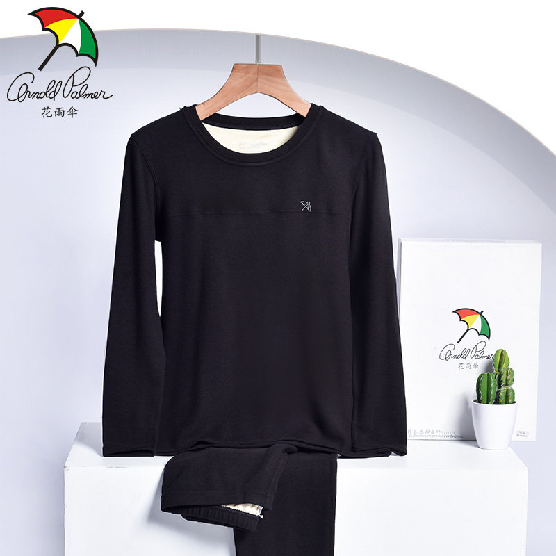 花雨伞德绒绵羊毛保暖内衣男中厚双层秋冬季秋衣秋裤防寒打底内穿