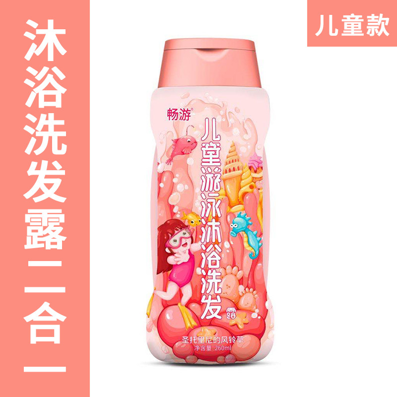 畅游 新款可爱二合一去氯儿童洗发沐浴露游泳装备260ML