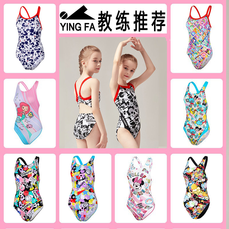 英发儿童泳衣女童2023新款可爱美人鱼中大童连体专业训练三角泳衣