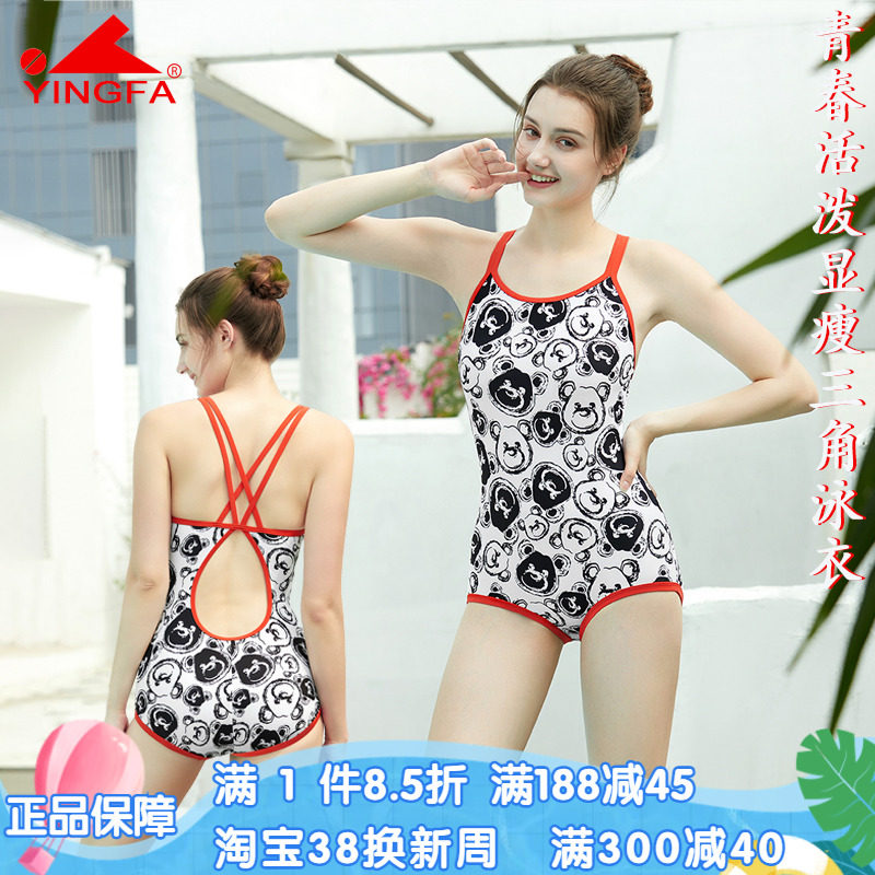 英发游泳衣女儿童连体三角女童可爱卡通印花中大女童游泳装