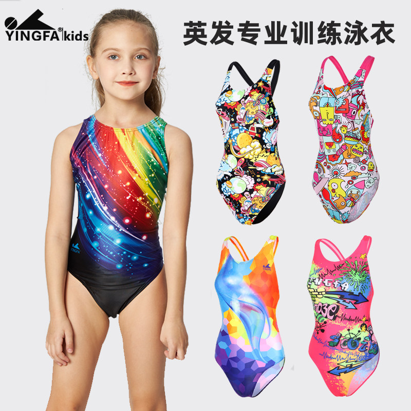 英发儿童连体泳衣训练比赛竞速儿童泳衣小女孩泳衣儿童游泳衣