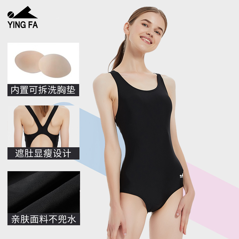 23新款 英发连体泳衣女保守遮肚温泉游泳池平角显瘦专业防走光