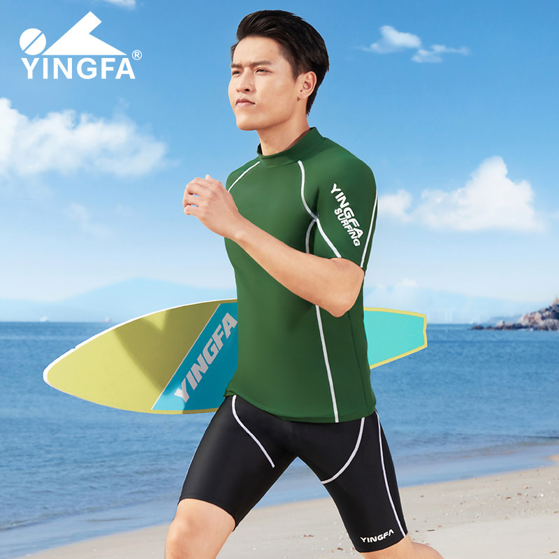 英发冲浪泳衣男士分体短袖上衣2023新款潜水专业运动服防晒游泳装