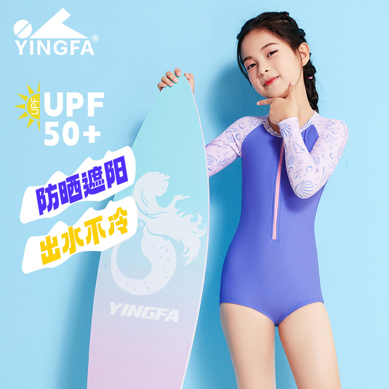 英发儿童泳衣女孩中大童潜水冲浪服青少年连体长袖防晒保暖游泳装