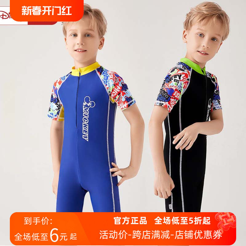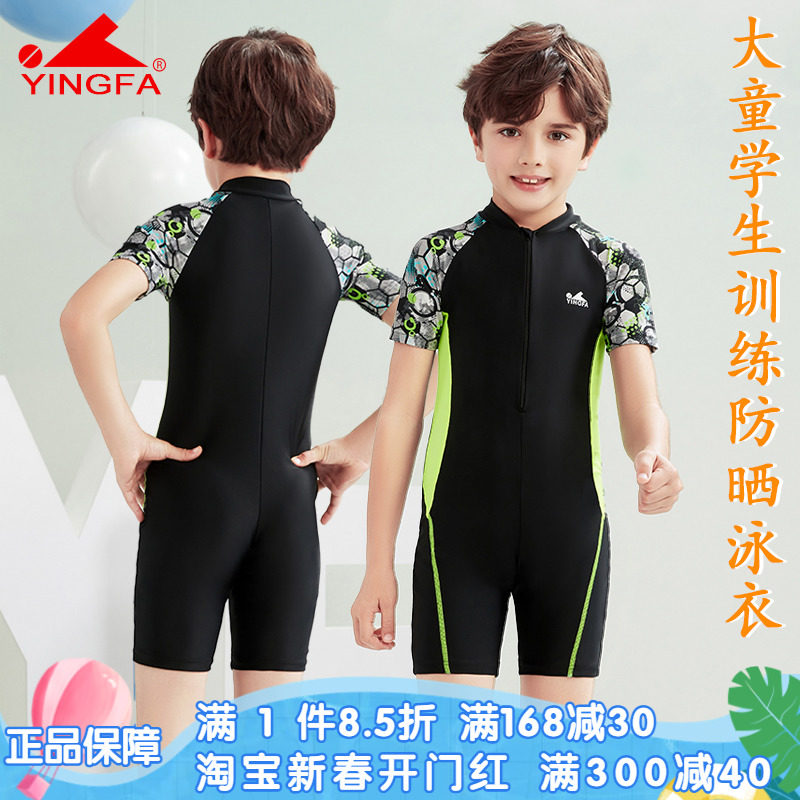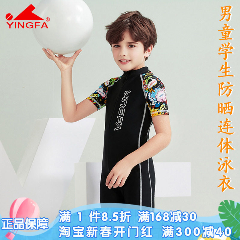 英发儿童连体泳衣男童新款小孩防晒潜水服中大童宝宝短袖游泳装