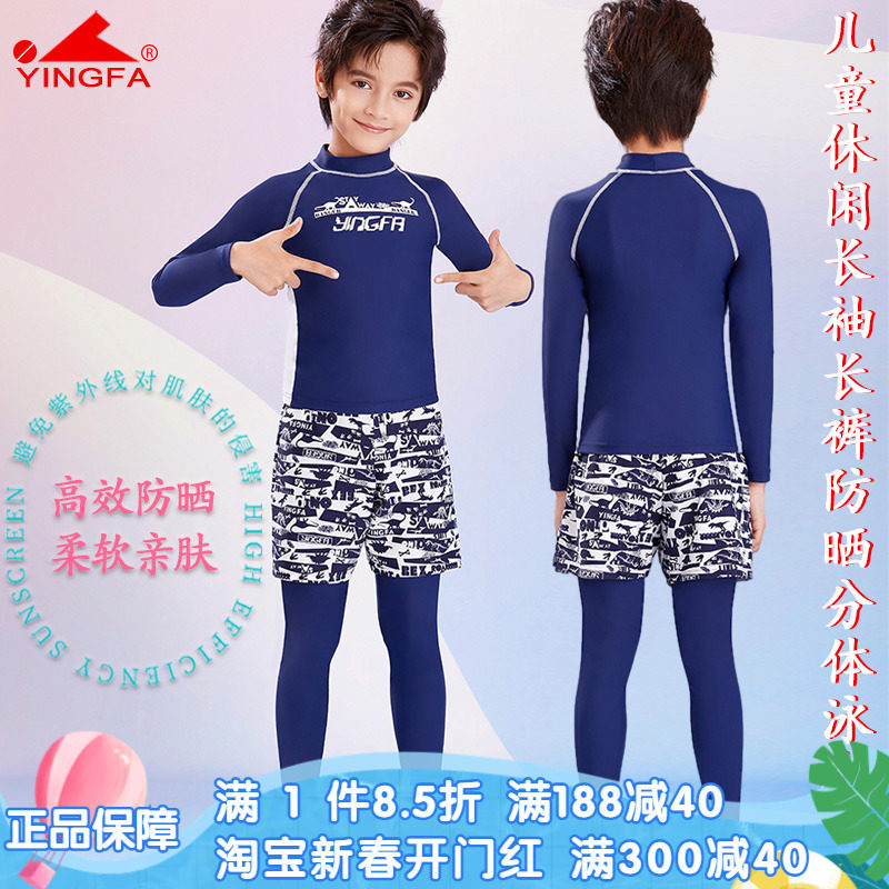 英发儿童泳衣男孩男生长袖长裤分体潜水冲浪服连体防晒游泳装0555