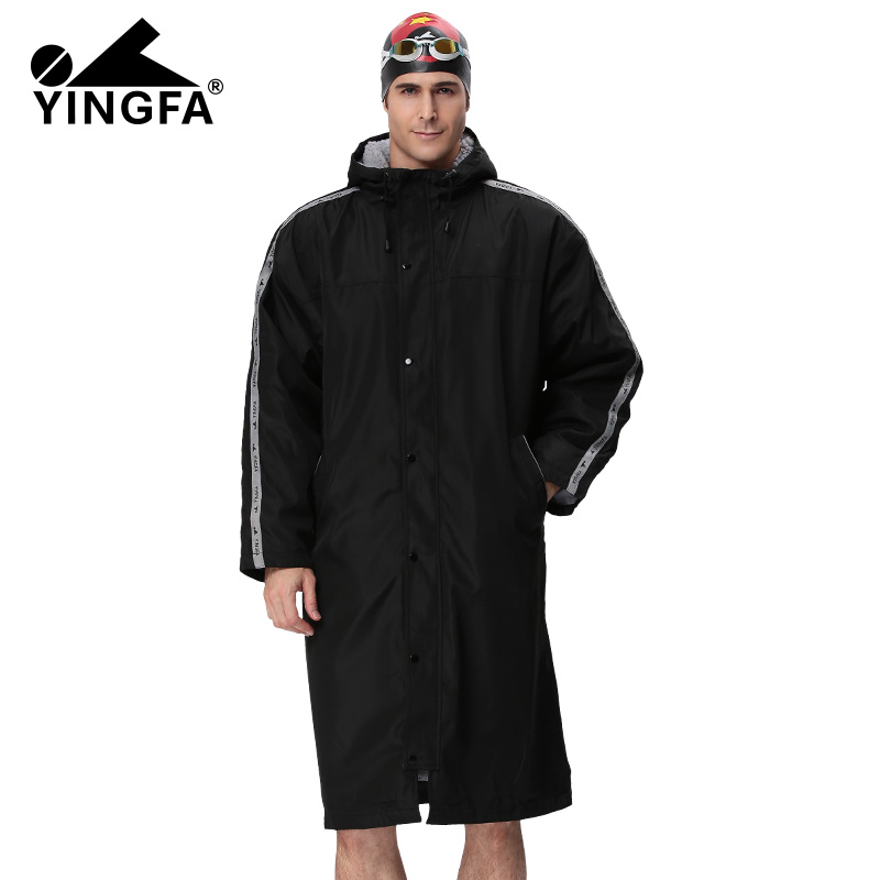 英发游泳浴袍过膝保暖快干训练棉服加绒连帽男女成人儿童运动大衣