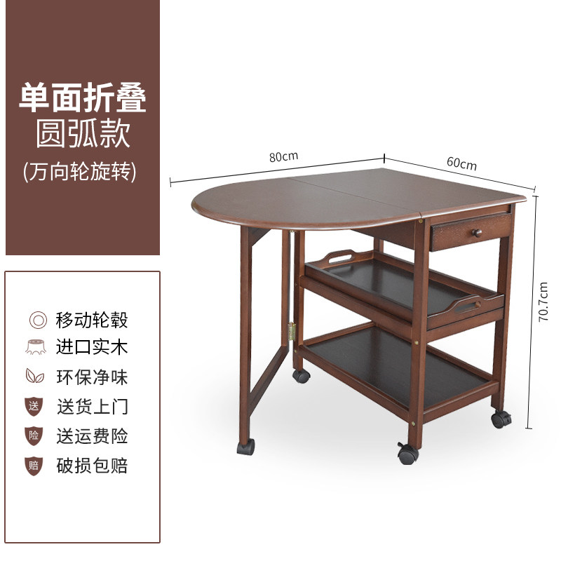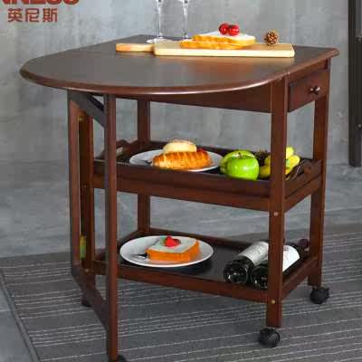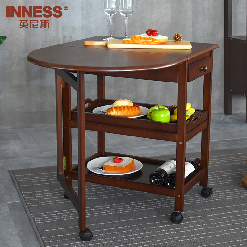 定制英尼斯实木小户型折叠圆形餐桌可移动茶几厨房小推车家用沙发