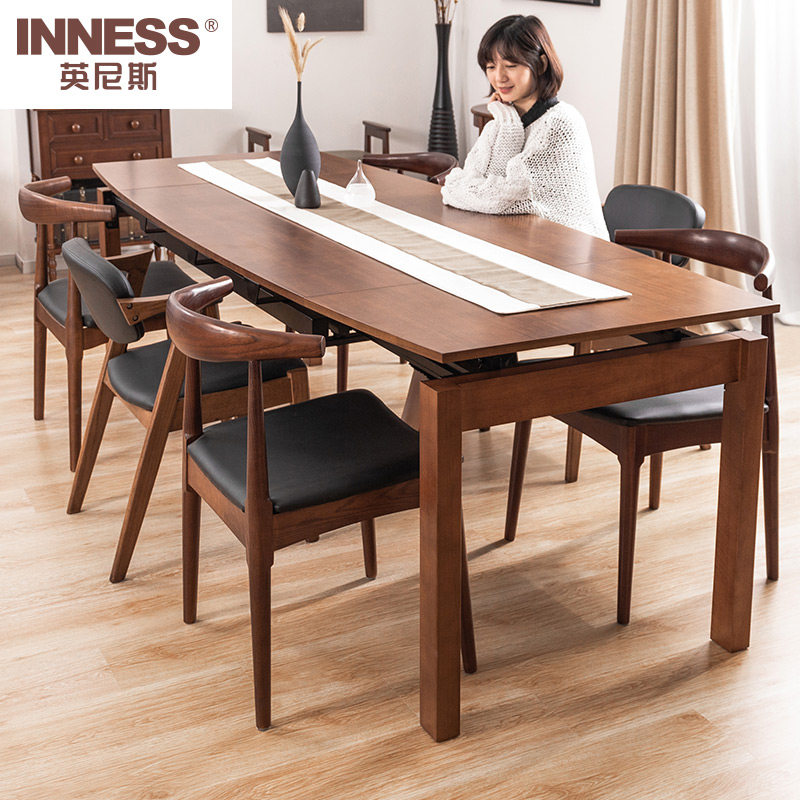 英尼斯现代简约大小户型可折叠家用桌子北欧全实木餐桌餐厅吃饭桌