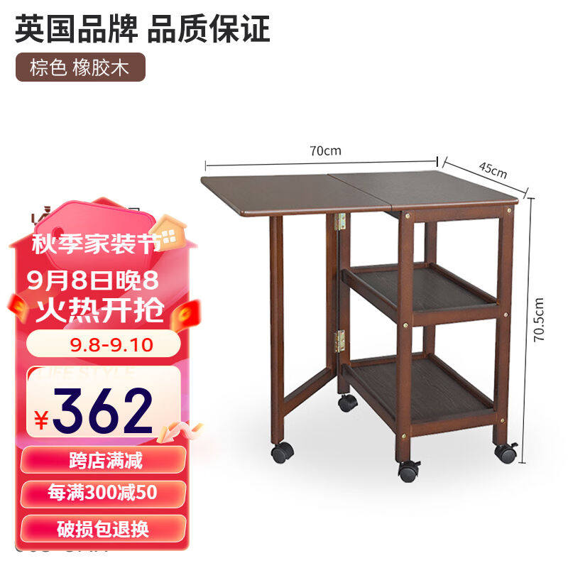 英尼斯实木小户型折叠圆形餐桌可移动茶几厨房小推车家用沙发边几