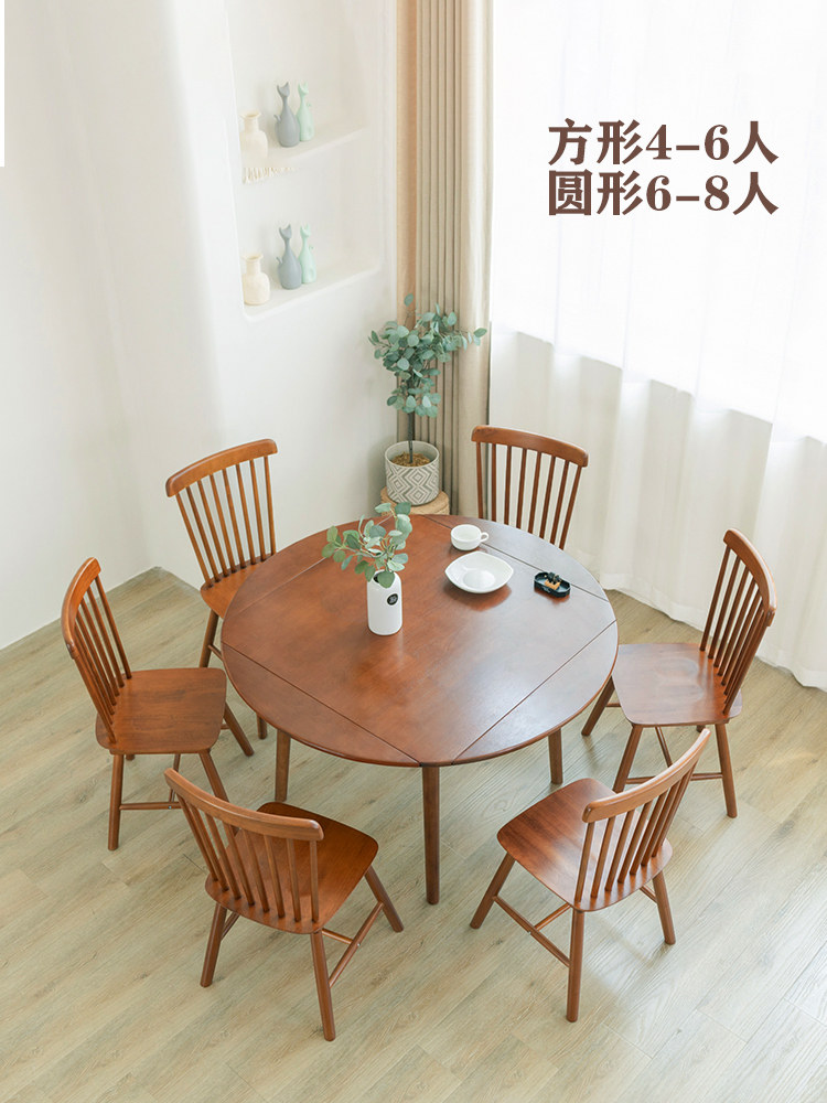 定制英尼斯 实木折叠圆形餐桌 家用小户型可伸缩餐桌现代简约吃饭
