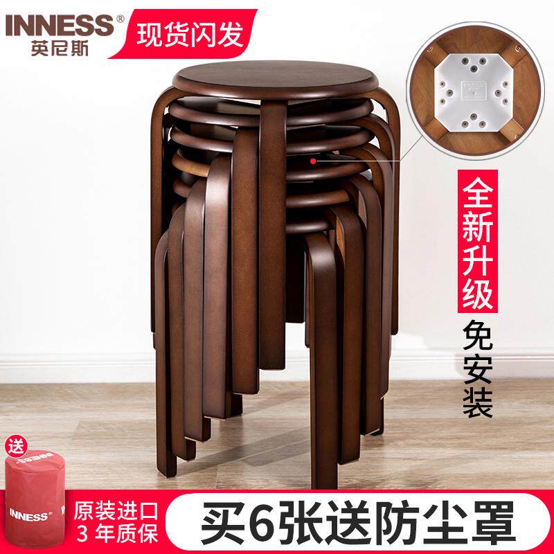 英尼斯实木加厚餐桌凳家用圆凳简约小凳子客厅板凳网红矮凳可叠放