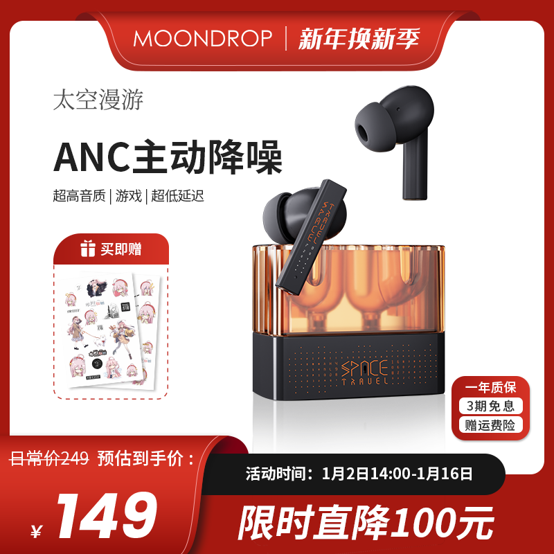 水月雨太空漫游智能真无线主动降噪蓝牙耳机游戏适用小米华为苹果