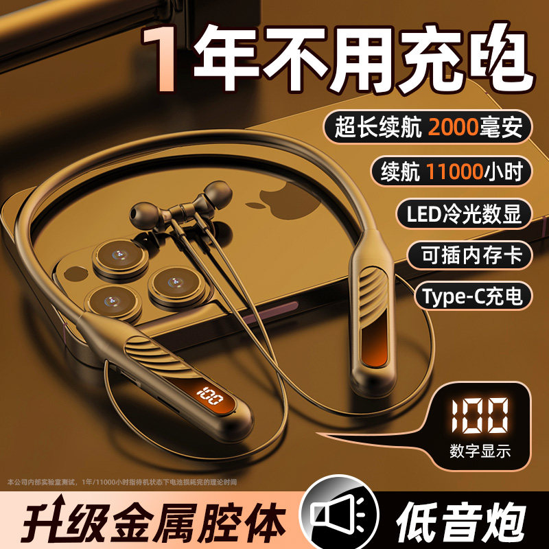 2023新款颈挂脖式超长待机双耳蓝牙耳机通用苹果OPPO华为小米vivo