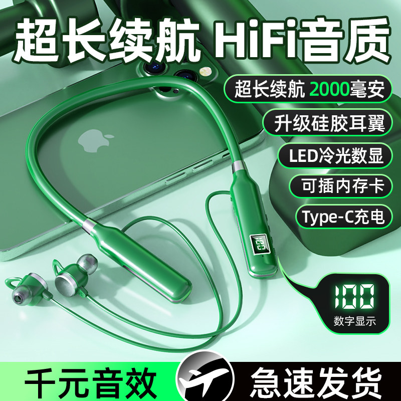 颈挂脖式无线蓝牙耳机超长续航2023新款运动跑步降噪适用苹果华为