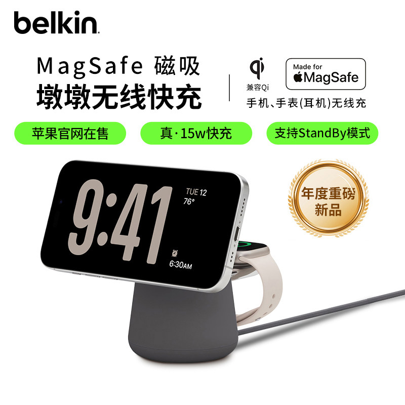 图拉斯小云团三合一无线充电器magsafe支架磁吸二合一底座适用苹果15手机iPhone新款iWatch手表耳机AirPods座