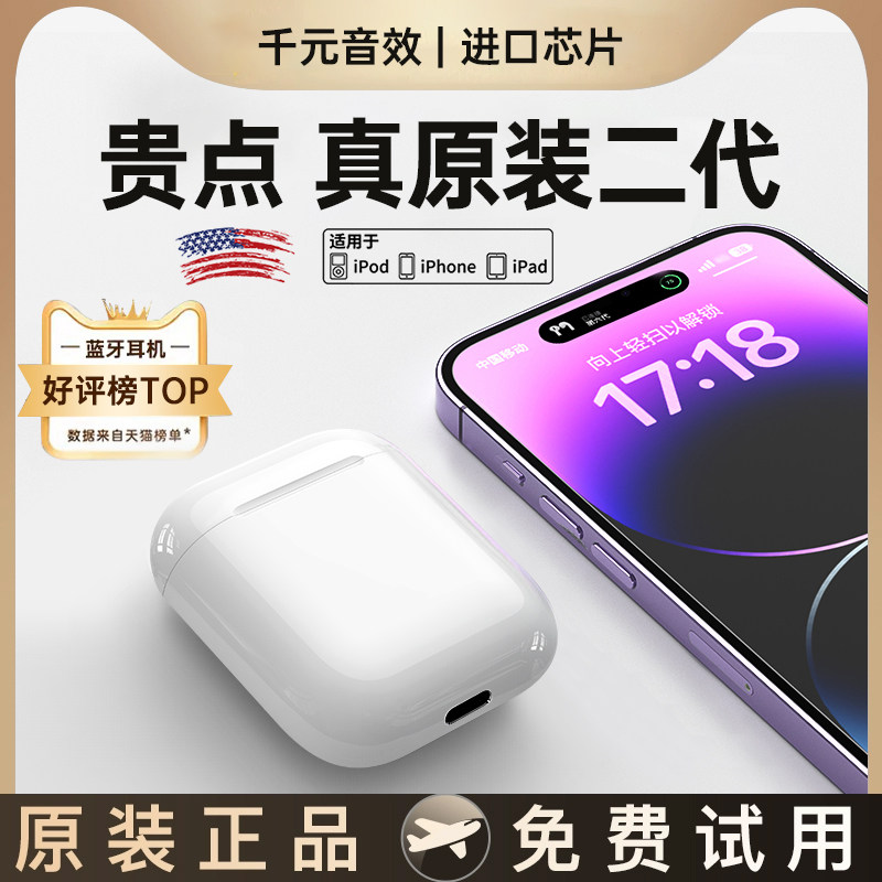 蓝牙耳机真无线华强北二代适用苹果14正品13手机原装iPhone12官方