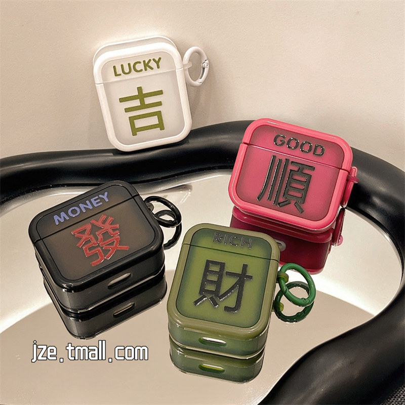 国风发财顺吉文字适用苹果新3代airpods蓝牙无线耳机套男airpods1/2硅胶软壳airpodspro女新款耳机包二代情侣