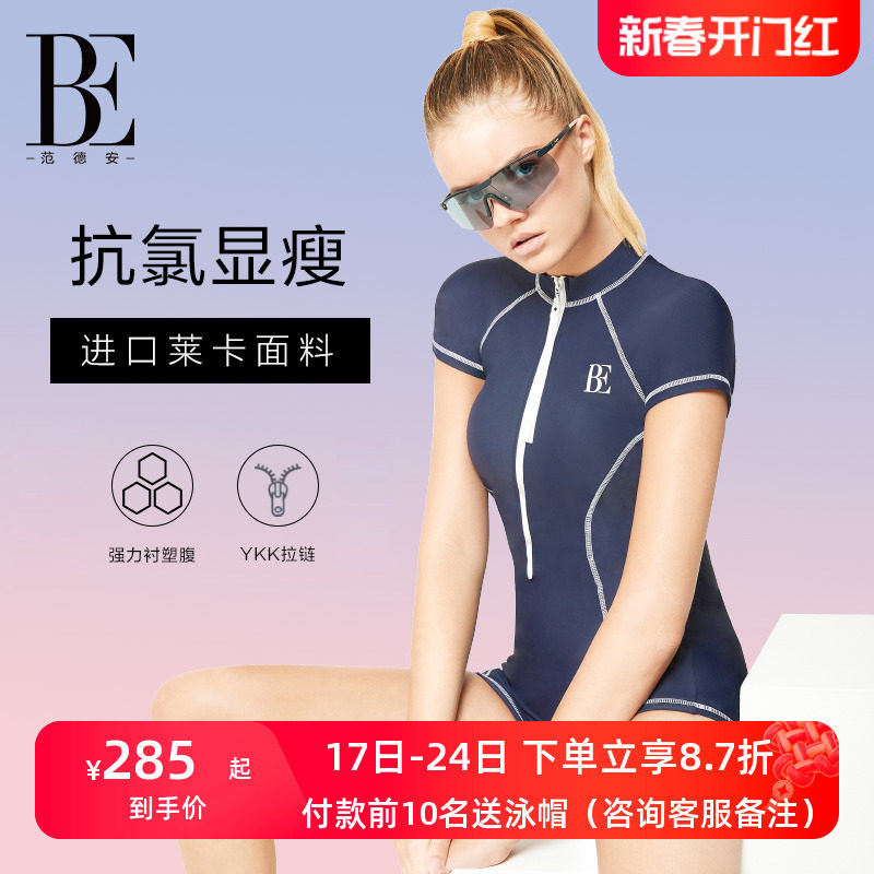 BE范德安时尚系列分体泳衣女短袖遮肚显瘦小胸聚拢防晒专业运动