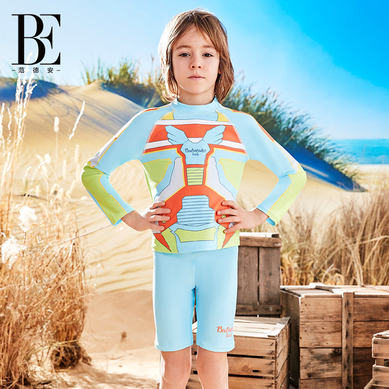 BE范德安儿童分体游泳衣 长袖防晒抗氯莱卡面料男童平角短裤泳装