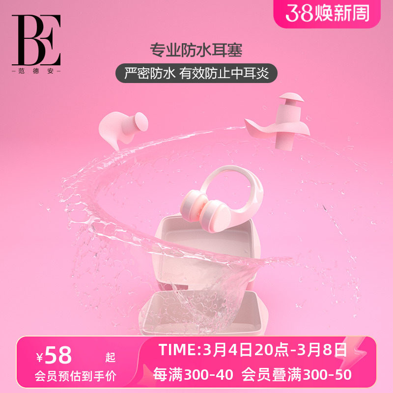 BE范德安耳塞鼻夹游泳装备专业防水防滑3D贴合时尚可爱夏
