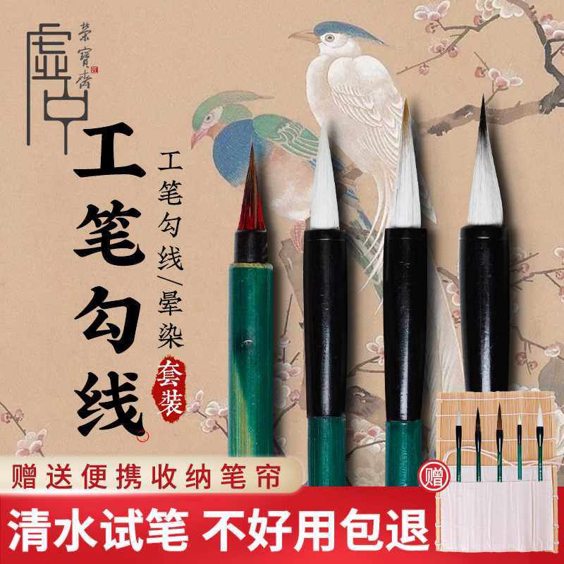正品荣宝斋毛笔花鸟山水写意工笔勾线初学生练习专业国画牡丹梅兰