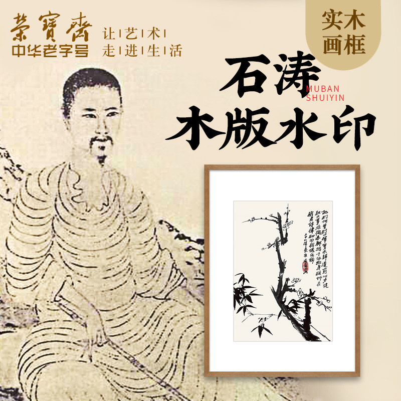 荣宝斋石涛山水双清图带框新中式卧室书房客厅玄关木版水印装饰画