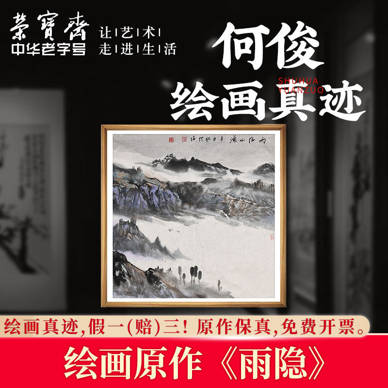 荣宝斋原作国画真迹何俊山水毛笔画装饰画中式客厅卧室书房收藏品