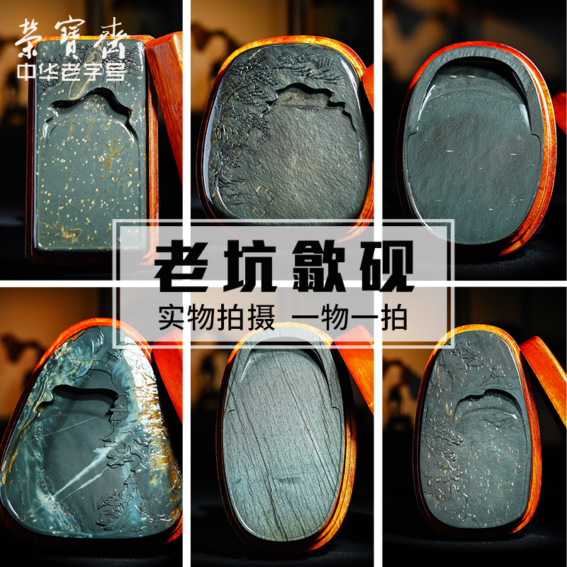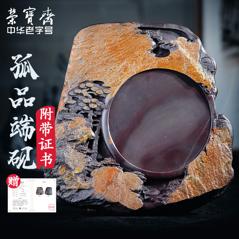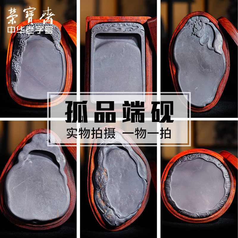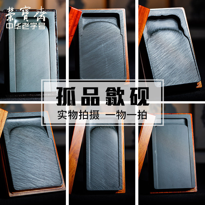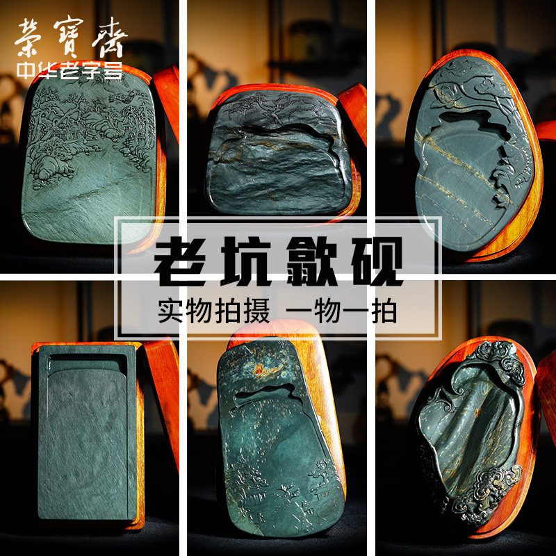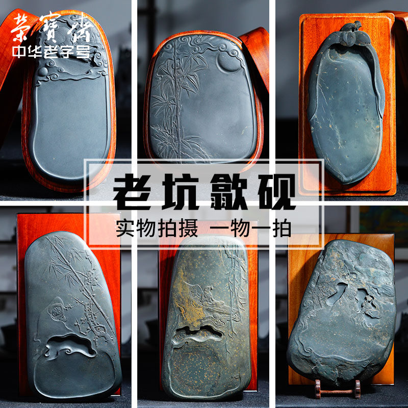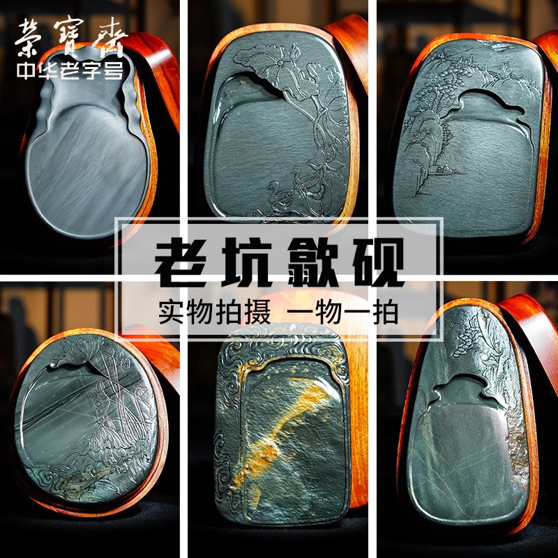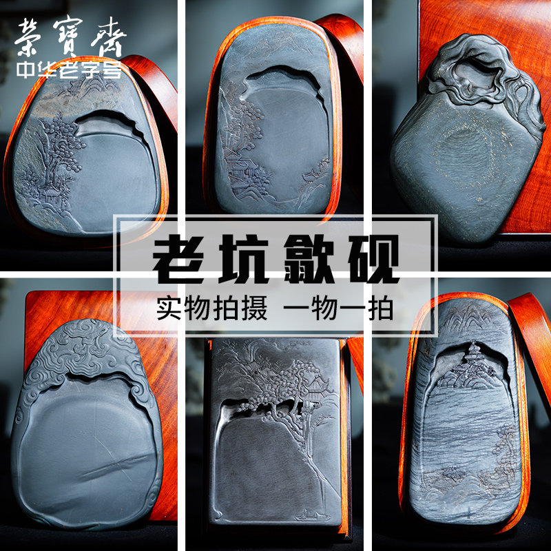 荣宝斋老坑孤品歙砚原石砚台文房四宝研墨条书法国画手工精雕天然砚石礼品礼盒