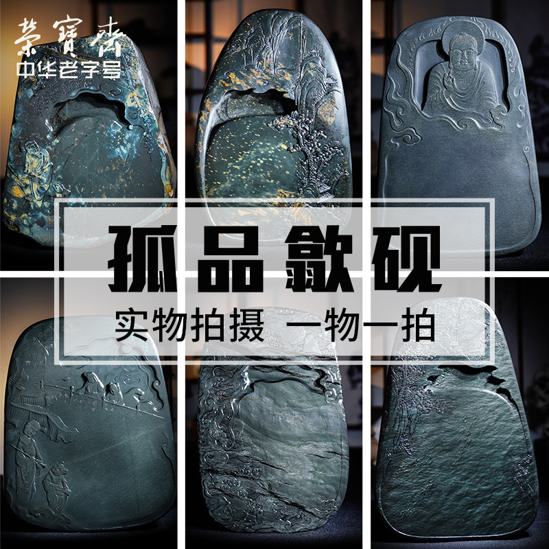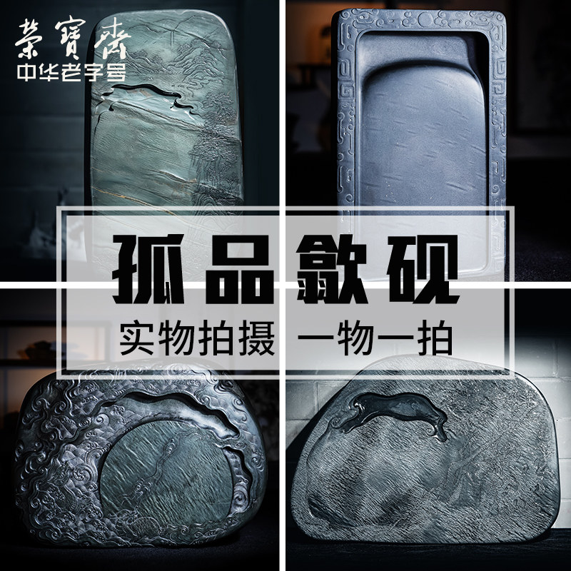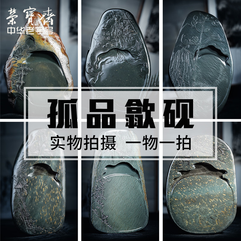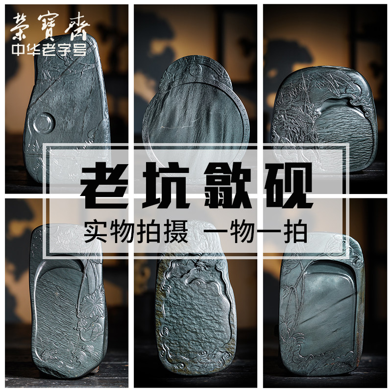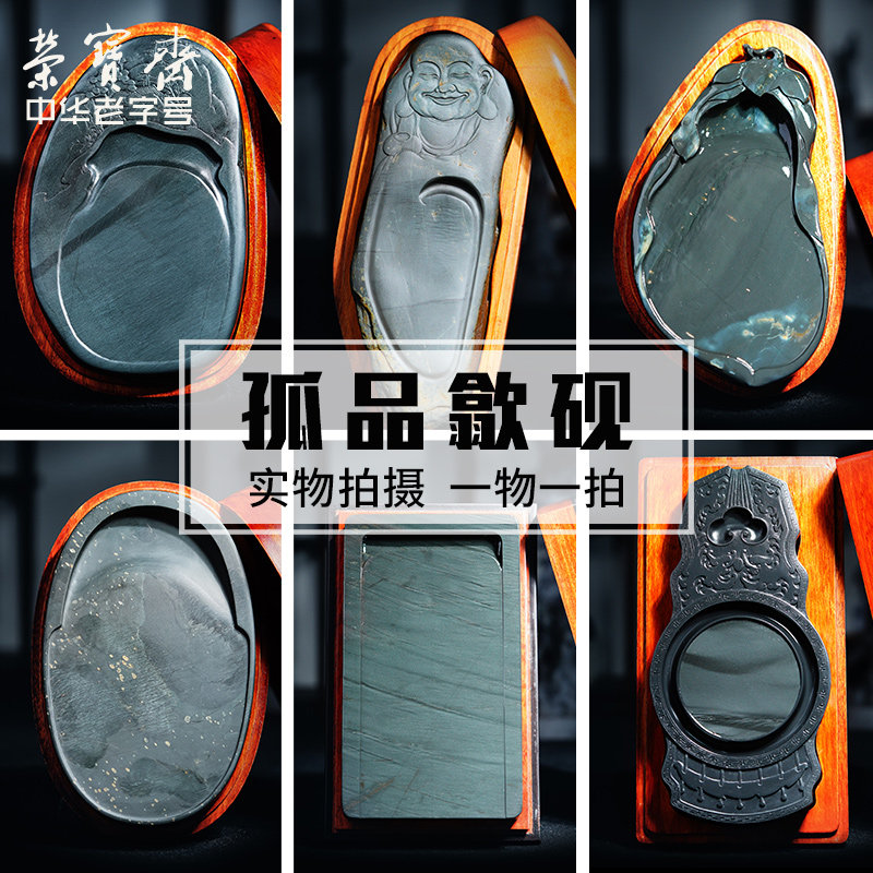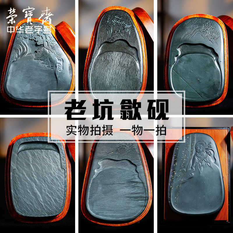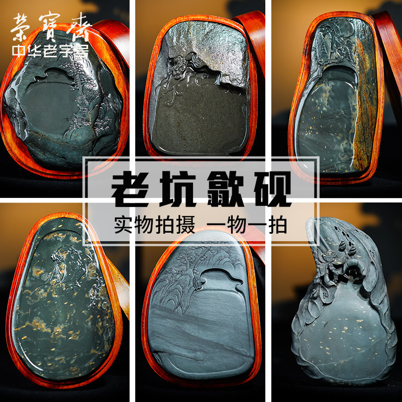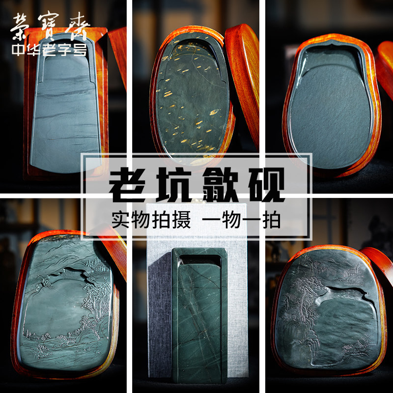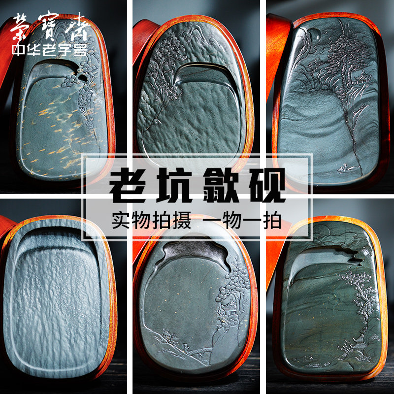 荣宝斋老坑孤品歙砚原石砚台文房四宝研墨条书法国画手工精雕天然砚石礼品礼盒