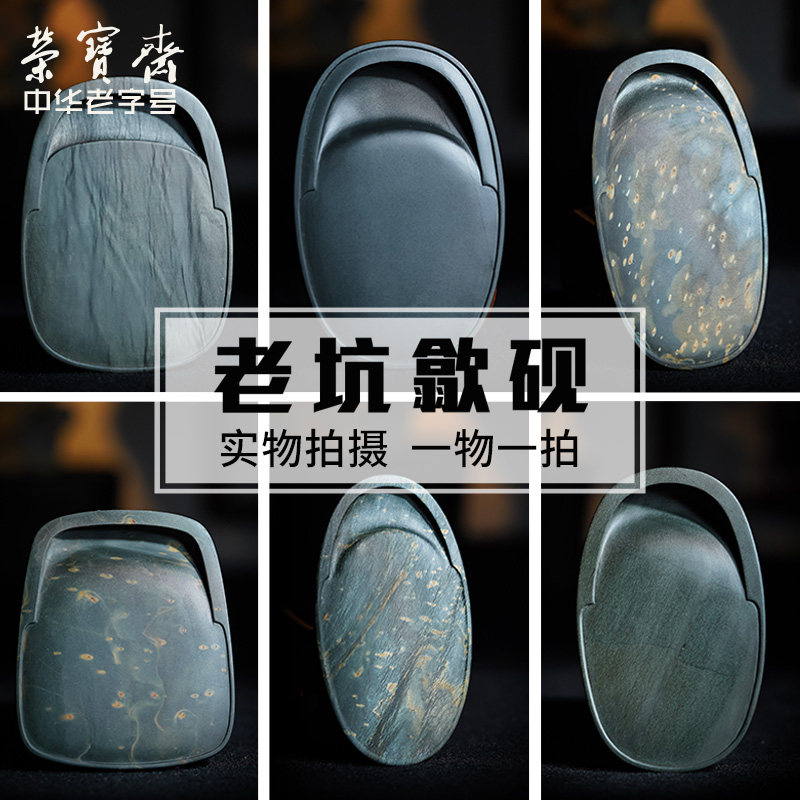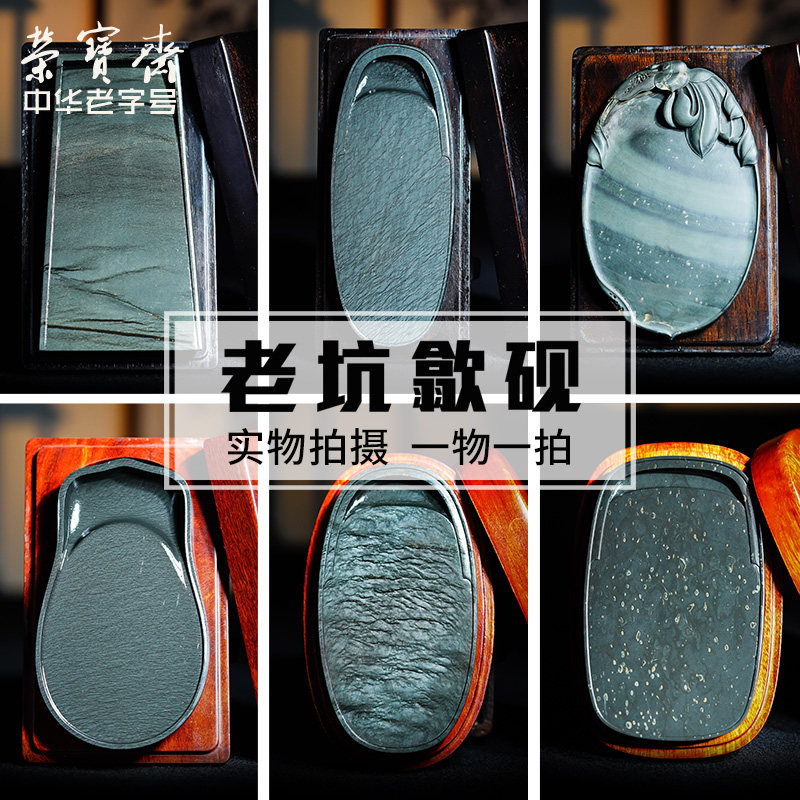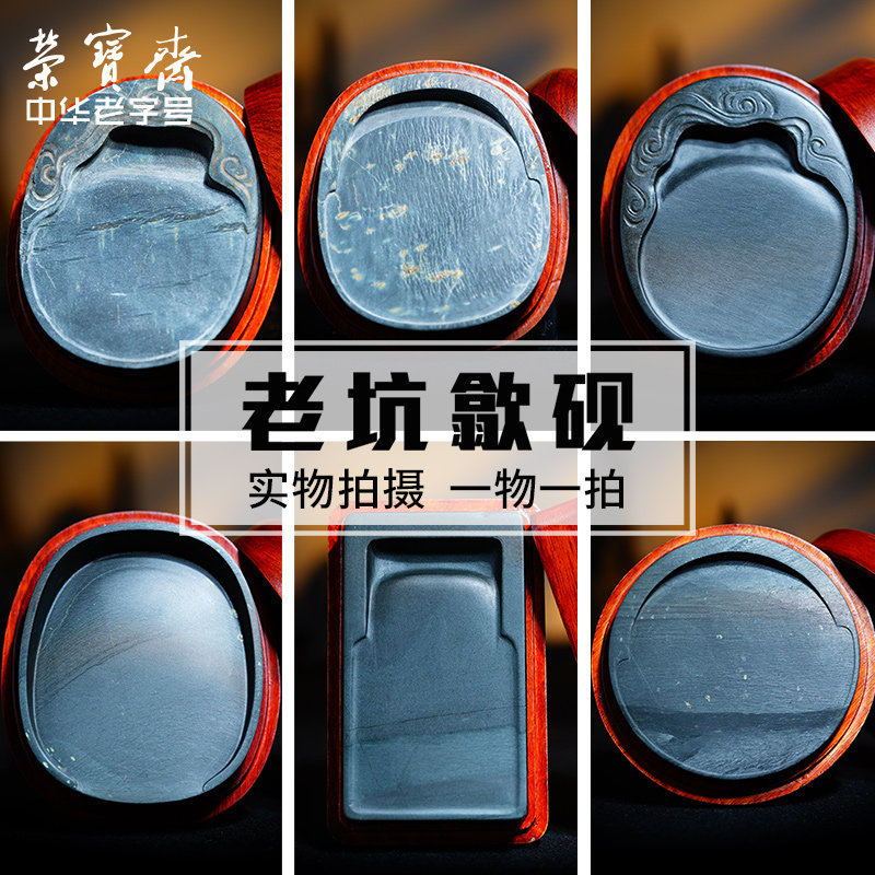 荣宝斋砚台歙砚文房四宝毛笔研墨条书法国画墨盒眉子坑雁湖眉纹金