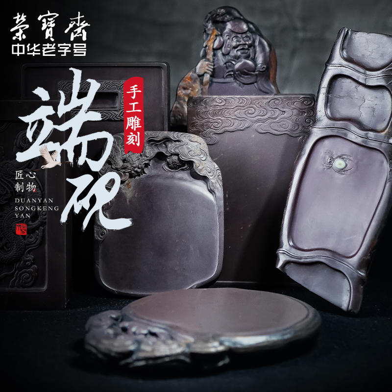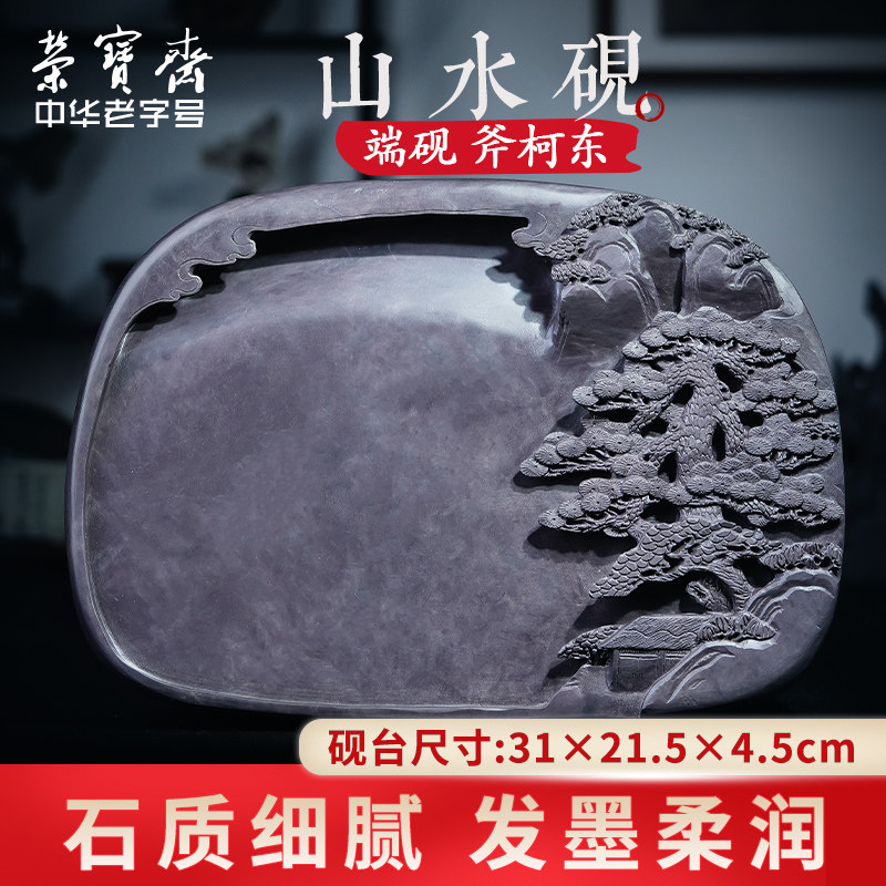 荣宝斋砚台精雕罗纹砚文房四宝初学者学生毛笔书法专用高档大容量