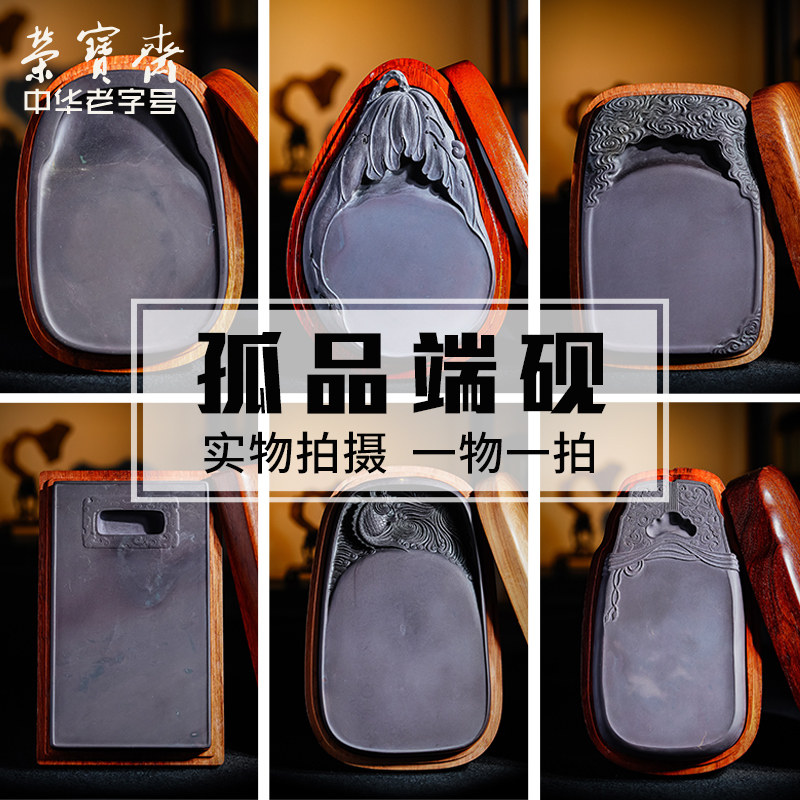 荣宝斋砚台带盖淌池斧柯东端砚6寸墨条墨锭文房四宝套装精品端砚初学者砚台原石