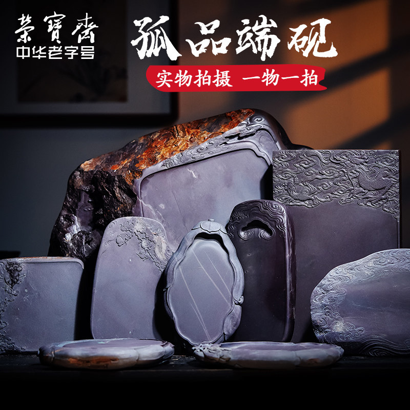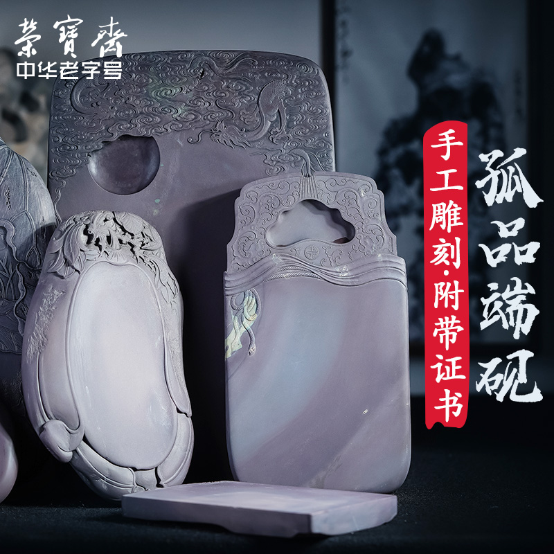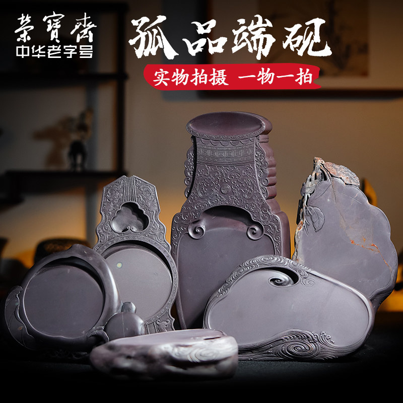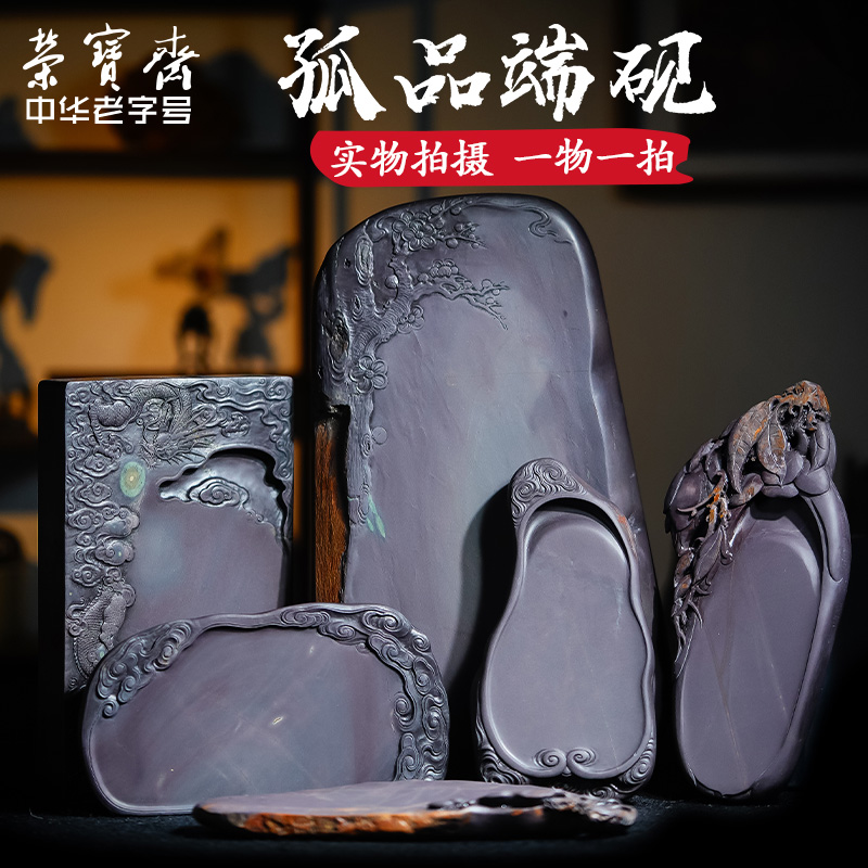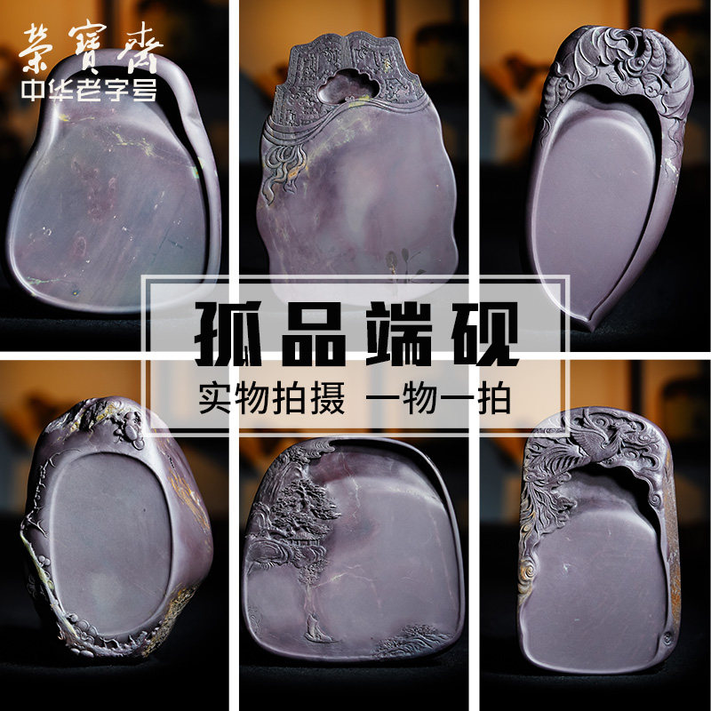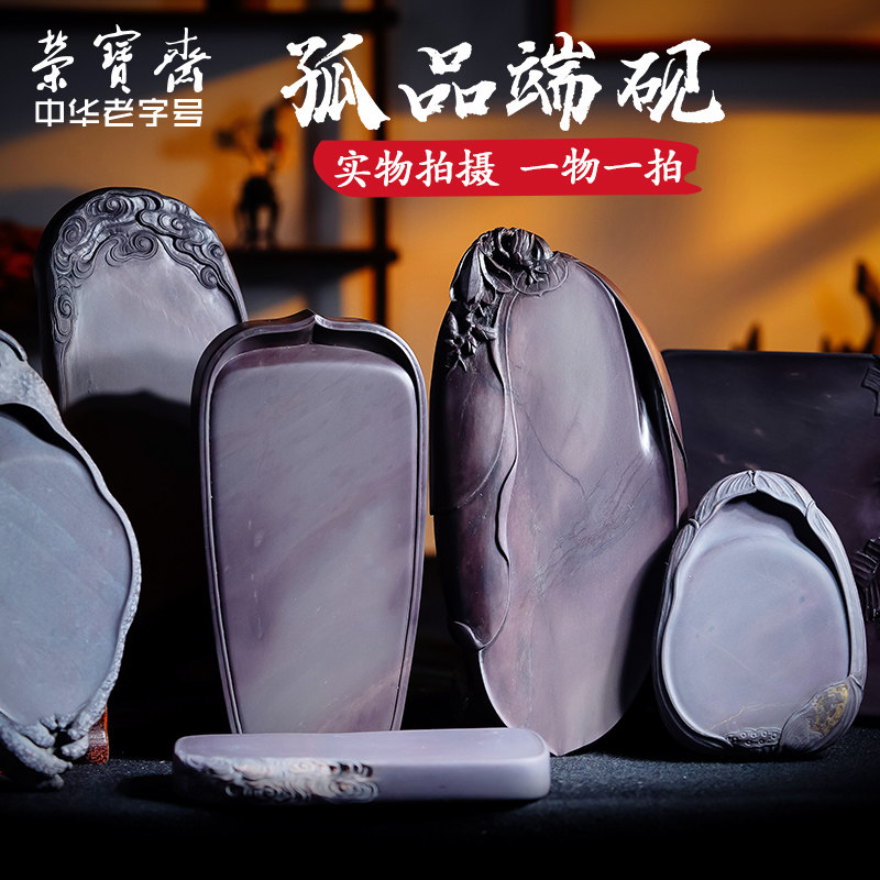 荣宝斋砚台孤品端砚文房四宝毛笔书法国画原石简约古朴绘画研墨玫瑰紫天青蕉叶砚礼盒