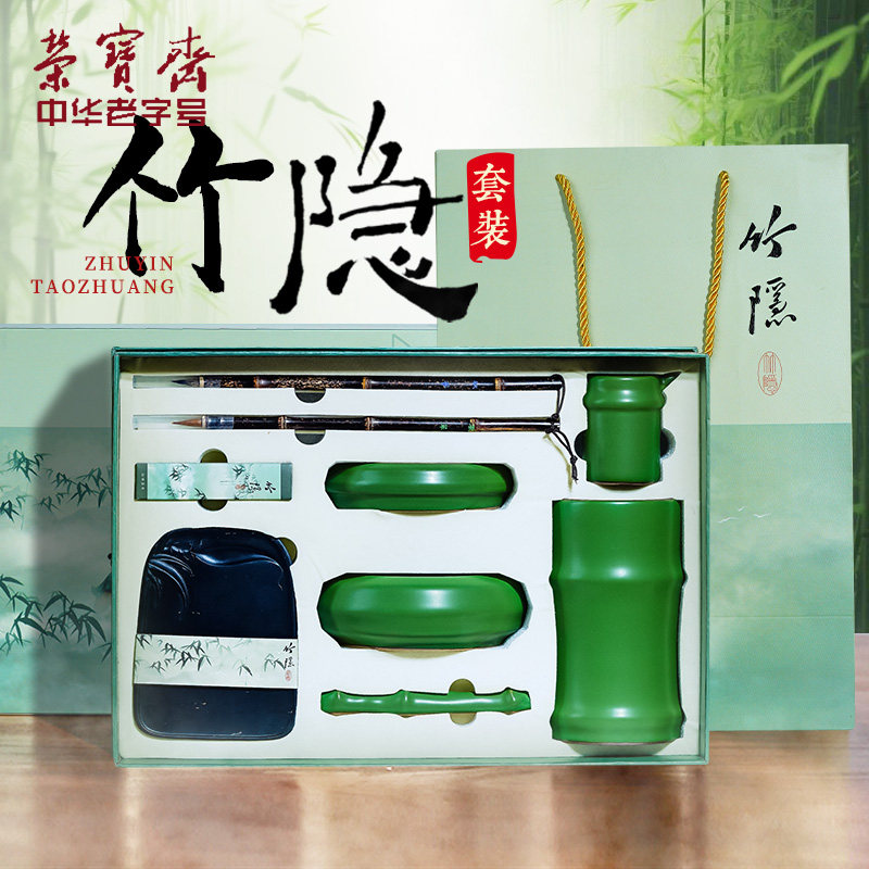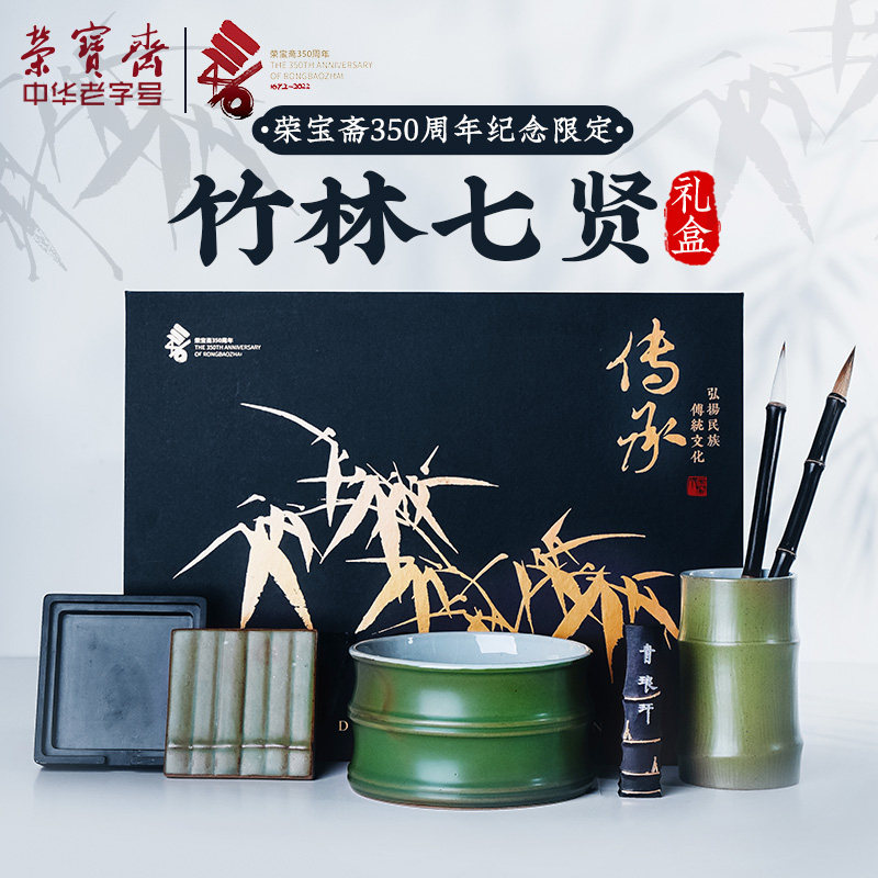 荣宝斋文房四宝套装350周年纪念郑板桥竹林七贤兼毫笔专业狼毫毛笔墨锭砚台笔洗书法国画收藏礼盒