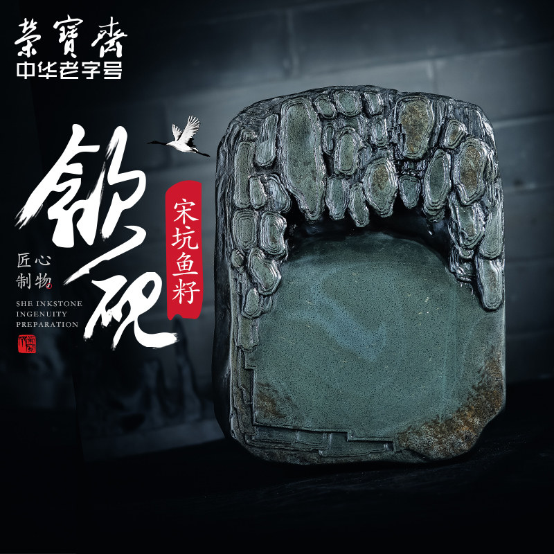 荣宝斋老坑孤品歙砚水舷坑龙鳞水波精品文房四宝毛笔研墨条书法国画手工精雕砚台礼盒送礼