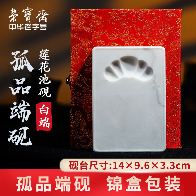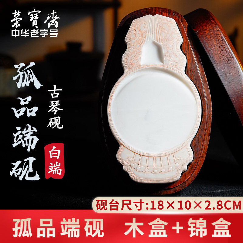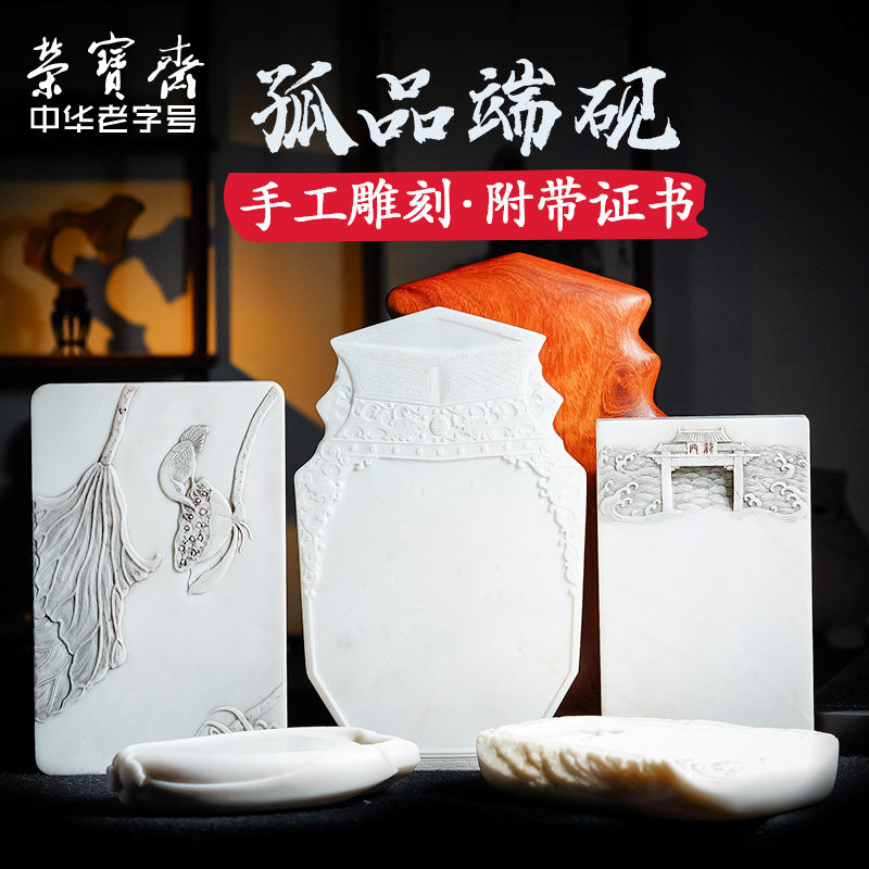 荣宝斋砚台孤品文房四宝毛笔书法国画墨锭墨汁天青蕉叶白青花原石精雕手工精品老坑端砚白端礼盒