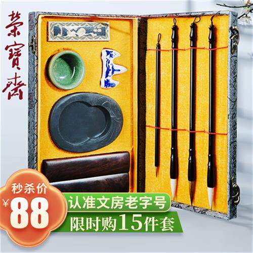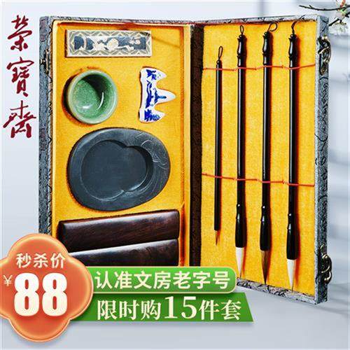 荣宝斋中华老字号文房四宝礼盒精选书法国画笔墨纸砚书法套装毛笔砚台墨锭18寸商务文化礼品套装